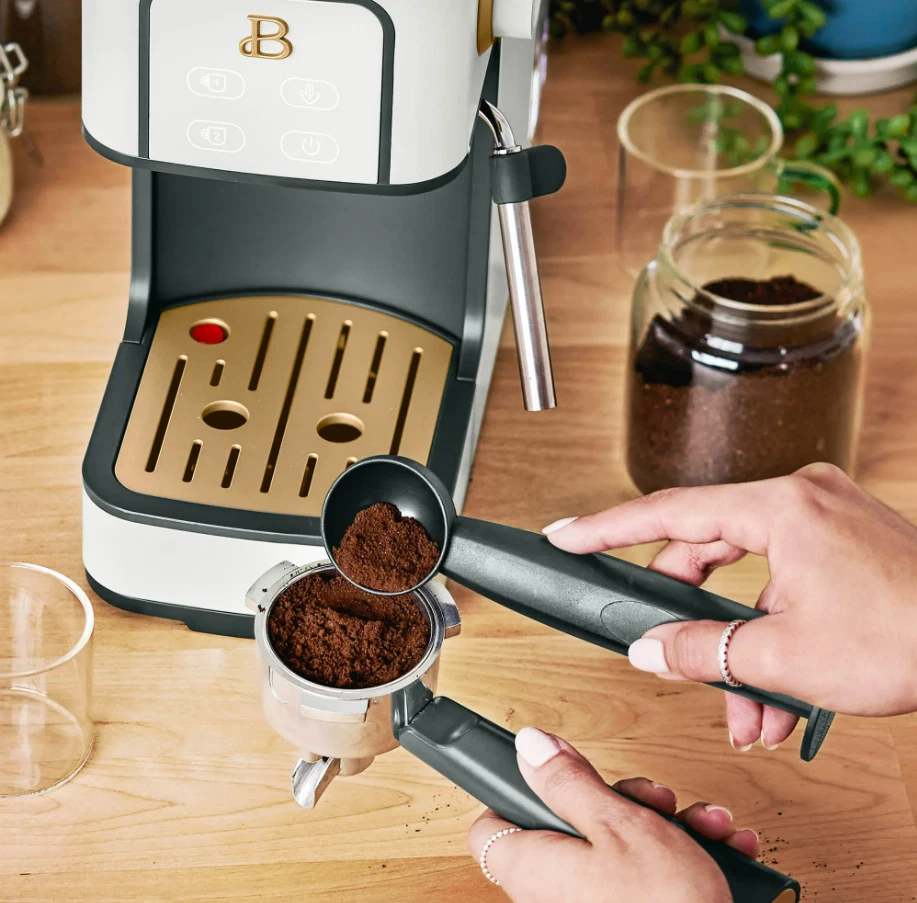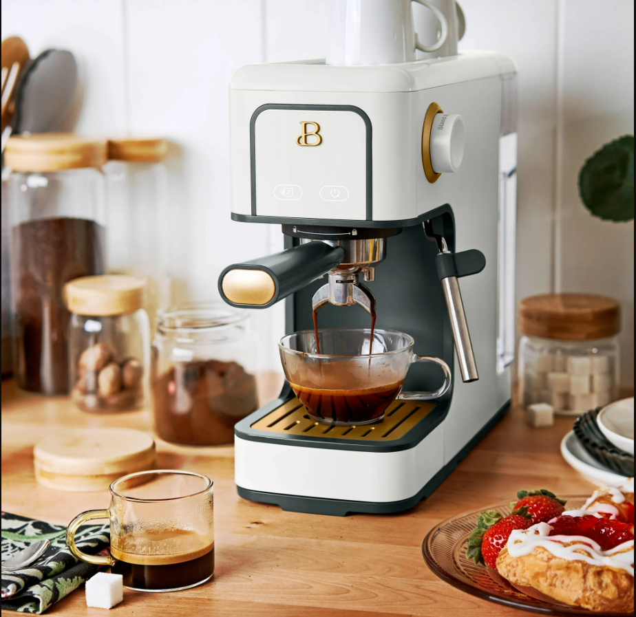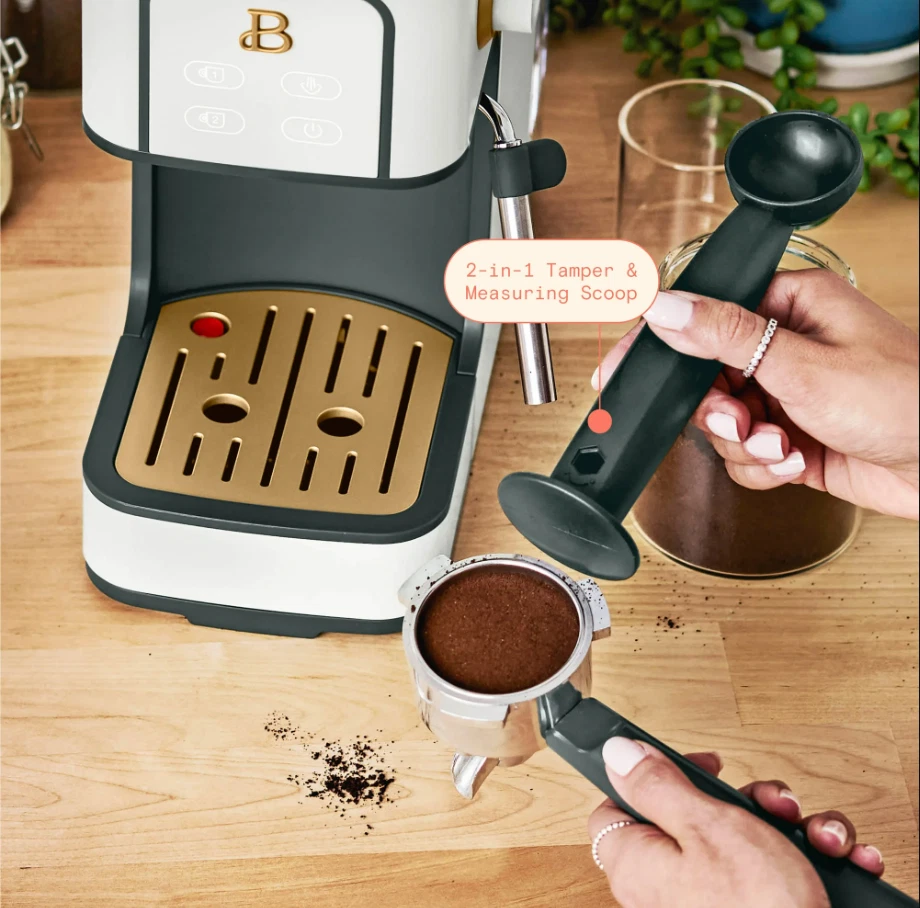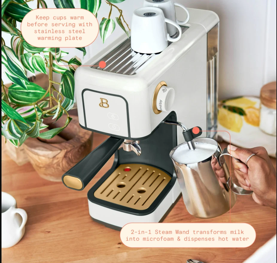 Beautiful Slim Espresso Maker – 20-Bar Pressure – Rose by Drew Barrymore / Measuring spoon is NOT included Compact Design | 20-Bar Italian Pump | Steam Wand | Café-Quality Espresso at Home Brew rich espresso and craft café-style drinks with the Beautiful Slim Espresso Maker , designed in the elegant Rose color. This compact yet powerful machine features a 20-bar Italian pressure pump for deep extraction, smooth crema, and bold espresso flavor. With its modern minimalist profile and slim footprint, it fits beautifully into any kitchen without taking up space. Equipped with a manual steam wand , you can froth milk for lattes, cappuccinos, macchiatos, flat whites, and more. The removable water tank and drip tray make brewing and cleaning simple, while its touch-controlled interface ensures effortless operation. ⭐ Key Features 🔥 20-Bar Italian Pressure Pump Delivers optimal extraction for rich espresso with a smooth crema layer. ☕ Slim, Space-Saving Design A narrow, modern footprint ideal for small kitchens, apartments, dorms, or compact coffee bars. 💨 Integrated Steam Wand Create silky microfoam for lattes, cappuccinos, and specialty drinks. ⏱ Fast Heating System Heats quickly so you can brew espresso in under a minute. 🎛 One-Touch Controls Simple, intuitive buttons for single or double-shot espresso. 🫙 Removable Water Reservoir Easy to refill and clean; supports multiple drinks per fill. 🧼 Easy to Maintain Removable drip tray, portafilter, and steam wand for quick cleanup. 🎨 Premium Rose Finish Modern matte color with signature Beautiful styling. 📏 Specifications Brand: Beautiful Model: Slim Espresso Maker Color: White Pressure: 20 bar Frother: Manual steam wand Water Tank: Removable Shot Sizes: Single / Double Material: Metal + durable plastic Power: 120V Dimensions: Slim, compact countertop size Use For: Espresso, latte, cappuccino, macchiato, iced espresso