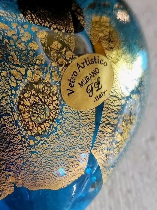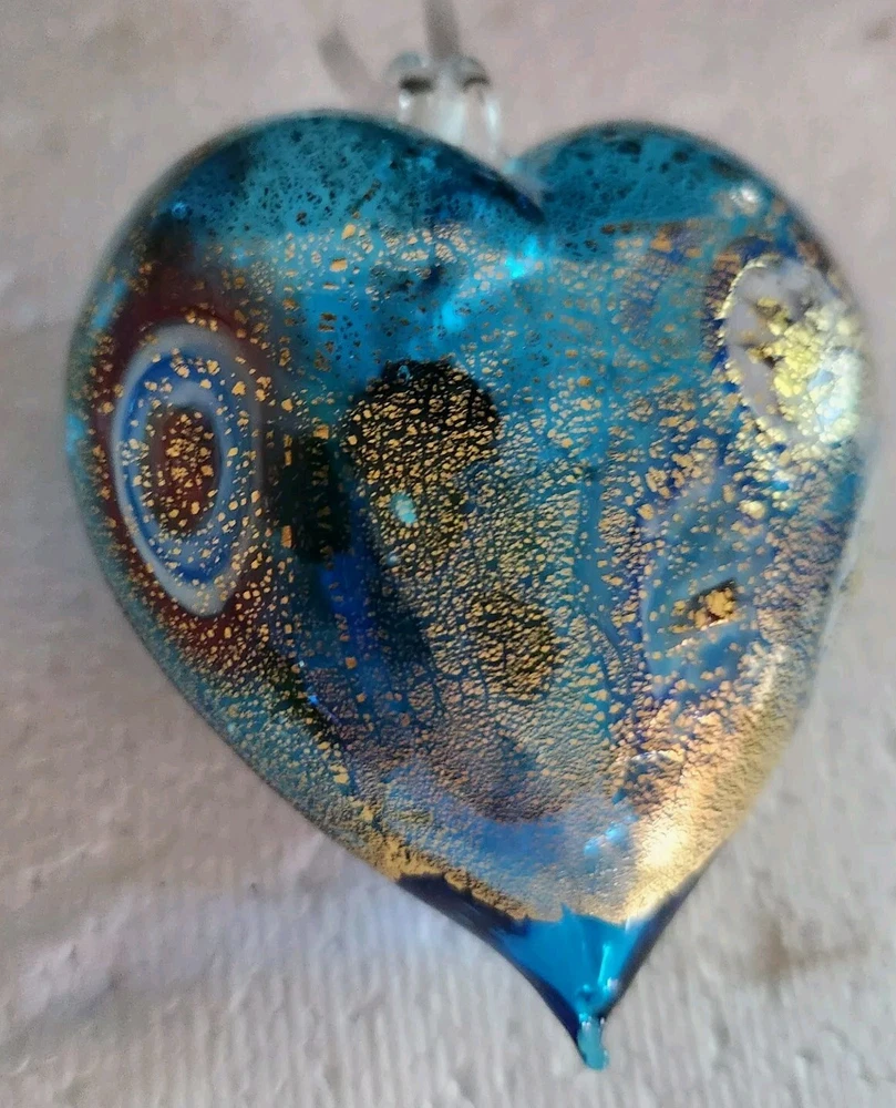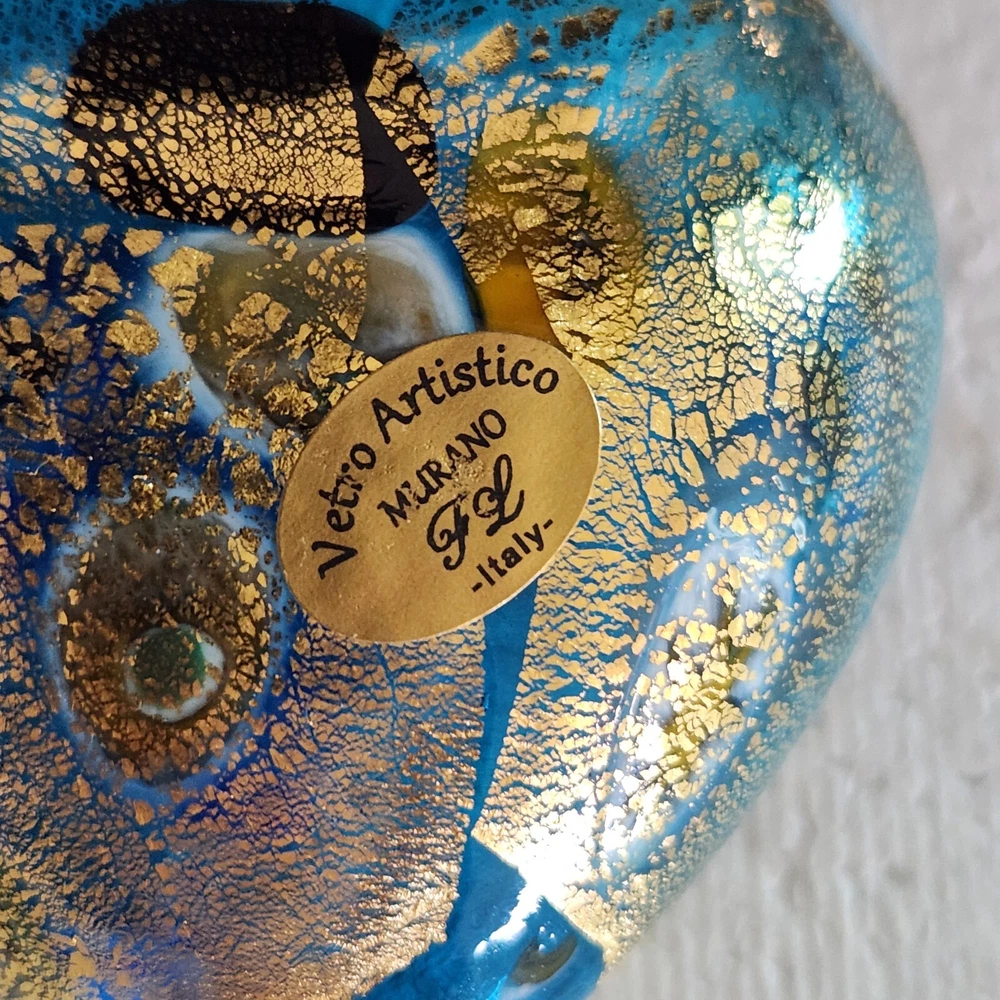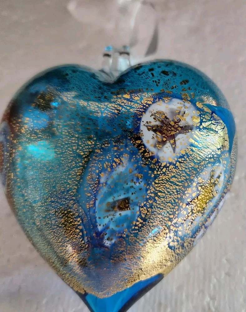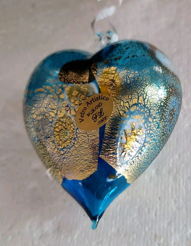 Beautiful Vetro Artistico Murano Glass Gold Blue Heart Ornament