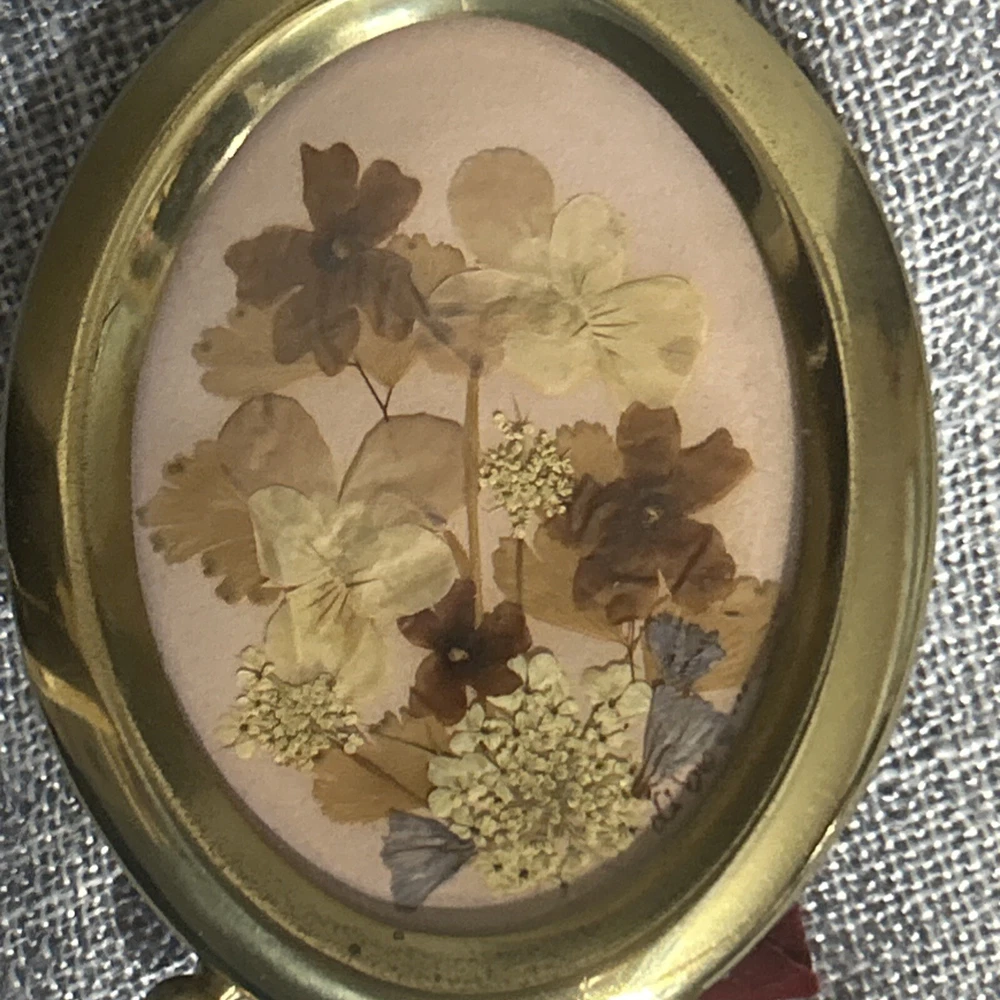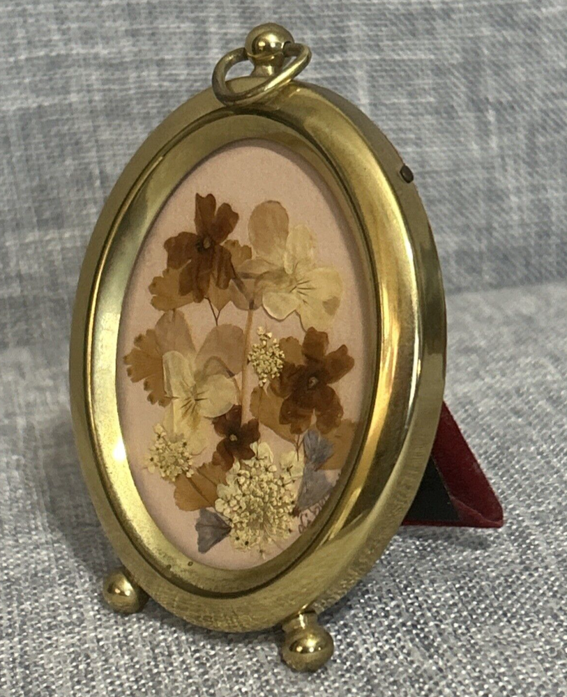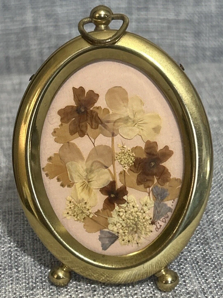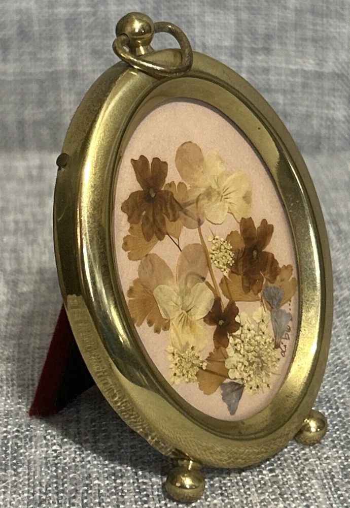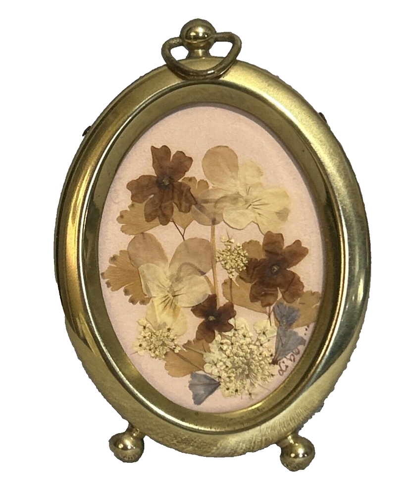 HomeBeautiful Vintage Pressed Florals in a 4" Tall Gold Tone Oval Frame