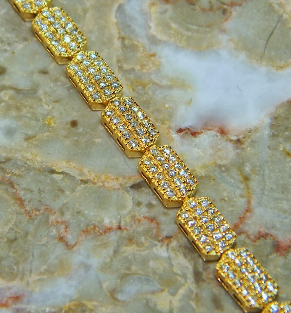 Item Type: Bracelet Weight: 15 g. Material: Sterling Silver plated with yellow gold Main stone: WHITE TOPAZ Other stones: - Width (widest section): 3/8 inch Inner circumference: 7 1/2 inch Stamp / Mark: 925 Condition: New Main color: white