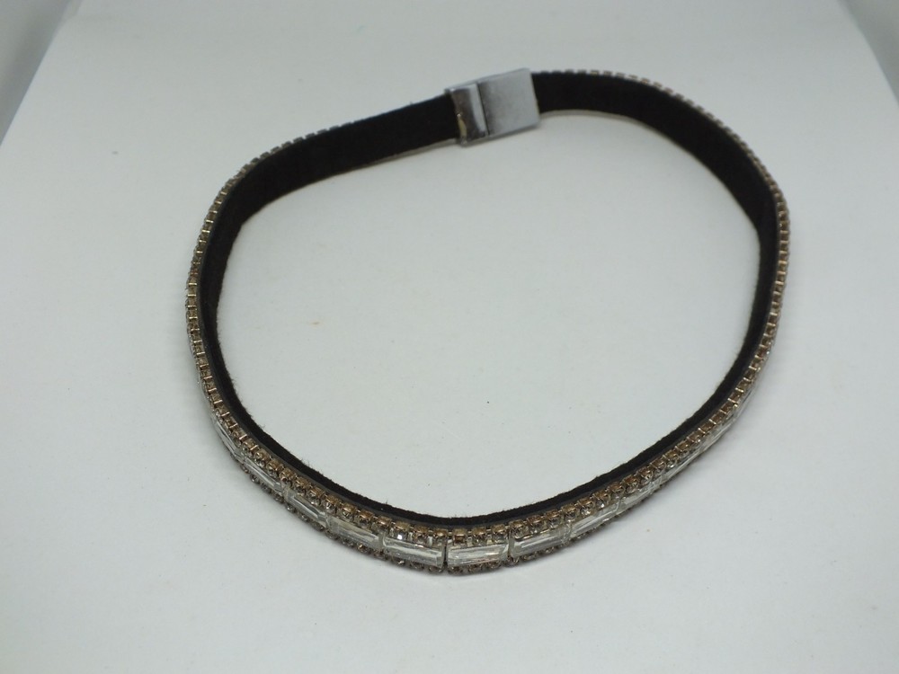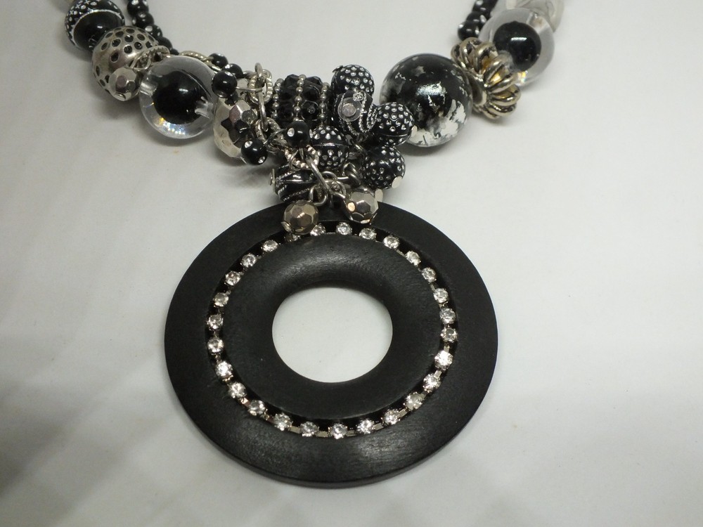 For your consideration is a beautiful necklace choker (wrap style) done in a silver tone with silver, clear and black beads and a circle of rhinestones and dangling chain on the pendant measuring 1/2 inch wide by 18 inches long unwrapped plus the 2 inch pendant and 3 inch chain. Great addition to your jewelry wardrobe. Very good gently used condition. Comes with a gift box when possible. Picture does not do justice. Thanks for looking! FREE shipping to the United States. The more you purchase on the same order the better price I can give you do to the high cost of shipping. Discounted shipping rates for International buyers purchasing multiple items. KEEP watching-I am always adding linens and jewelry.