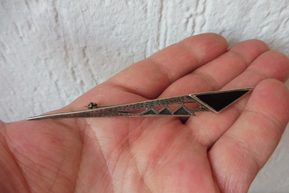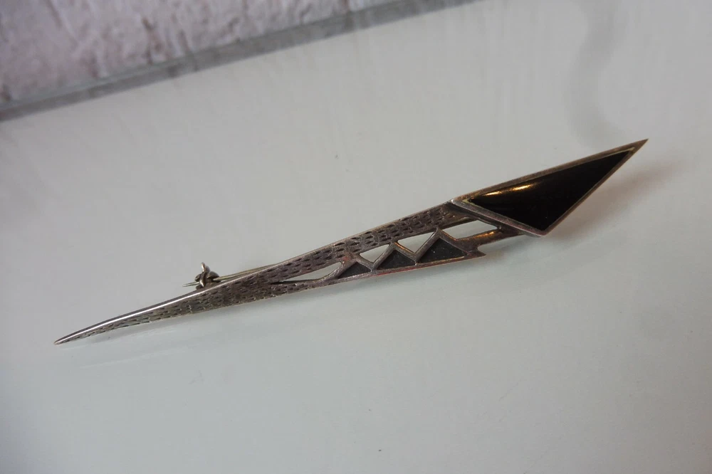 Beautiful, old brooch, 925 silver with onyx, pin, 10.2cm The description of this item has been automatically translated. If you have any questions, please feel free to contact us. Beautiful, old brooch (pin). 925 silver with onyx, beautifully crafted. Good condition for its age (silver partly). slightly tarnished, see photos). I don't know the exact old of the brooch. Dimensions: approx. 10.2 broad , 1 high, weighs 9.2 grams. Beautiful old brooch! You can find many more beautiful, interesting, old and antique things in my other articles, take a look! Legal provisions Seller's notes This article is excluded from the General Product Safety Regulation 2023/988 (GPSR). Because they are either animal by-products, antiques, collector's items or works of art. Beautiful, old brooch (pin). 925 silver with onyx, beautifully crafted. Good condition for its age (silver partly). slightly tarnished, see photos). I don't know the exact old of the brooch. Dimensions: approx. 10.2 broad , 1 high, weighs 9.2 grams. Beautiful old brooch! You can find many more beautiful, interesting, old and antique things in my other articles, take a look! Legal provisions Seller's notes This article is excluded from the General Product Safety Regulation 2023/988 (GPSR). Because they are either animal by-products, antiques, collector's items or works of art. Feingehalt 925 Marke . Zertifikat . Hauptsteinform . Hauptsteinfarbe Schwarz Abteilung Unisex Erwachsene Gesamtgewicht in Karat . Fassung . Diamantenreinheitsgrad . Hauptstein Bernstein Farbdiamantenintensität . Farbe Silber Metall Silber Ursprungsland . Material Silber Diamant-Farbgrad . Länge . Schliff . Hauptstein-Behandlung . Produktart Anstecknadel Hauptstein-Herstellungsprozess .