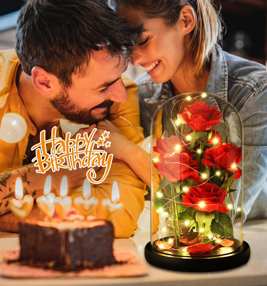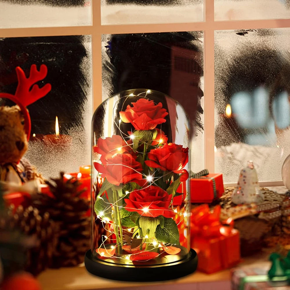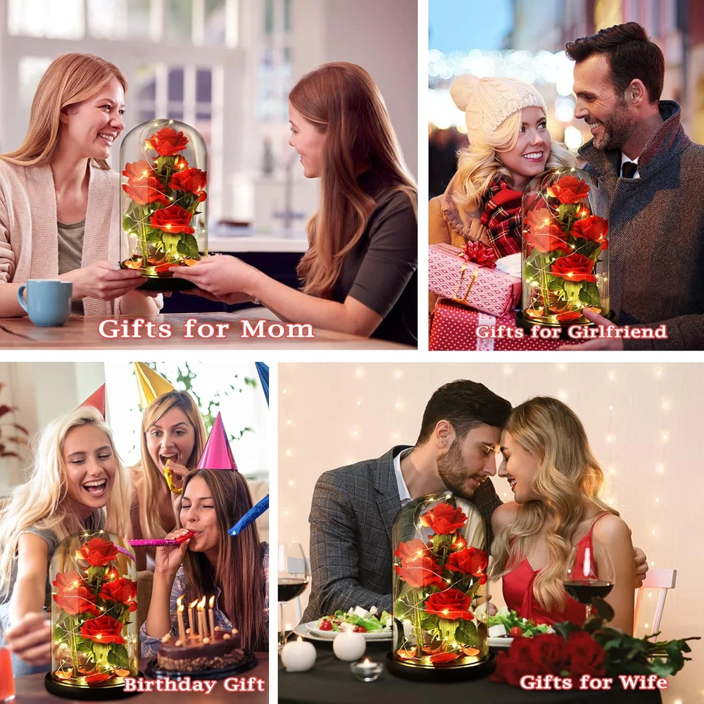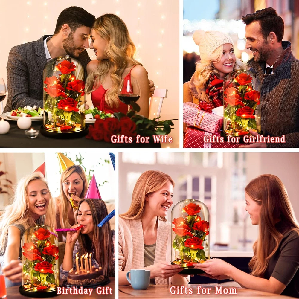 🌹 EXQUISITE CRAFTSMANSHIP - Silk rose are crafted from soft fabric, producing lifelike flowers. Elegant silk red rose, delicate petal, the twinkled lights and more come together in this beautiful arrangement. it's the sweet and heartwarming gift they truly deserve. 🌹 40LED WARM LIGHT - LED have high luminous efficiency and low heat generation, which is a warm light that will not glare even when it is lit at night. Soft light won't make your eyes feel tired. The LED and the silk rose are perfectly matched together, and the rose is more beautiful under the LED. The rose light is powered by 3 x AAA batteries (not included in pack). 🌹 RED ROSE AND LOVE - The Eternal Rose, Never Wither, Fade or Deform, which represents your love to your significant person. It's perfect for people who are allergic to pollen. Sending to girlfriend, family, loved ones and yourself. She will love this unique everlasting real rose. 🌹 ROMANTIC GIFT ON FESTIVAL - Romantic gifts for Anniversary, Birthday, Valentine's Day, Mother's Day, Teacher’s Day, Wedding, Thanksgiving Day, and Sweetest Day Gift and so on. "She loved it!" "You won't go wrong with it!". 🌹 EXQUISITE BOX PACKAGING - The preserved rose in glass dome will came with a beautiful packaging Gift box,so that you could give directly without spend time on package. Great romantic rose flower gift Valentine's Day gift, Christmas,Mother's Day gift, birthday present and wedding gift for lovers and friends. 🌹 Christmas Gifts for Women,Christmas Gifts For Girls, Christmas Gifts For Wife,Christmas Gifts For Girlfriend, Girls Christmas Gifts, Christmas Gifts for her ,Christmas Gifts for mom,Christmas Gift Sets, Women Christmas Gifts, Christmas Home Decor, Unique Christmas Gifts, Christmas Gift For Wife, Christmas Jewelry For Women, Christmas Outside Decorations, Christmas Gifts For Sister, Anniversary Gifts For Girlfriends 🌹 Valentines day gifts for her, happy anniversary, valentines day gifts for mom, wedding anniversary gifts for wife, 40th birthday gifts for women, mothers day gifts, unique gifts for men, anniversary gifts for couple, mom birthday gifts, mothers day gifts from son 🌹 Mom Gifts, Mother's Day Birthday Gifts, Perfect Gifts for Mom, Rose Gift for Mom, Mother's Day Gift for Wife, Gift Idea for Mothers Mom, Gifts for mom, Gifts for women, Galaxy Glass Rose Flower Gifts for Mom Grandma Women, Glass Rose Flower Gifts, Eternal Rose Night Light, Unique Preserved Rose Decoration, Mothers Day Gifts for Her Product Description Rose is the symbol of true love and it can also be the symbol of forever love, harmony family and loyal friendship. EXPRESS YOUR LOVE TO Gifts for Girlfriend Wife Women Women Christmas Gifts Birthday gift for friend Gift for her birthday Mom women wife girls her cute room decor Valentines Day gift Mother's Day gift Friendship gift / Anniversary gift Birthday gift / Wedding Mothers Day gift / Father's day Thanksgiving gift / Valentine's Day gift Romantic Surprises / Cake Topper Are you looking for a special method to show your loved one how much you care about them? EXPRESS YOUR LOVE Rose Gifts Your everything is always colorful and beautiful in my heart forever. The love between us is eternal! Amazing Decoration ! Birthday enchanted red rose with glass dome is a great gifts for lovers and an amazing decoration as a centerpiece in living room, bedroom, desk, engagement. Enchanted Red Rose conveying bright and colorful love to the world The rose in the glass dome is inspired by the story/movie "Beauty and the Beast", a beautiful love story. Well-preserved roses, falling petals, bright glass domes, warm light, wooden bases are all kept in an elegant gift box. The fresh and beautiful eternal rose represents love forever, it helps you to express your affection. Bedroom wall decor, 70th birthday gifts for women, 30th birthday gifts for women, birthday gifts, farmhouse decor, anniversary gift for her, butterfly decor, cactus decor, desk decor for women, Rose Gift In Glass Dome The rose in glass dome is wrapped around by an LED strip light, powered by 3 AAA batteries (not included). LED strip light shines bright, warm and beautiful. LED rose light can be from day to night for home room decoration or create romantic atmosphere. Led glass rose is a symbol of appreciation, forever love, passion and romance. Romantic Decoration & Night Light Red Rose, as a symbol of love, appreciation and wishes, ideal gift or amazing centerpiece in your living room, bedroom, dining room or office. Warm white light is not gentle to our eyes, but also gives us a romantic atmosphere. Forever Flower Perfect for Any Occasion 6x Rose 1x Wood Base 1x Glass Dome 1x LED Light 1x Set of Fallen Petals 1x Protection Box and Sponge Valentines Day Home Decor, Birthday party favors, bathroom decor sets accessories, office decor for women, gifts for birthday, mom birthday gifts, artificial plants for home decor indoor Forever Flowers Rose Each Rose Flower is an unique artwork which represents long-lasting friendship, beauty, and love. Amaze the love of your life with an Eternity Rose, and give them the token of love they deserve. Night Light Enchanted red rose with warm LED strip light is a perfect night light. The warm soft light is ideal for a sleeping area like bedroom, avoiding bright white/ beams that interfering with your sleep. Home decor If you want to add liveliness to your space with small amount of budget, or if real flowers aren't your option, you can consider using our artificial flowers as your decor. Easy to Assemble STEP 1: Remove the glass dome from the wooden base. STEP 2: Wrap the LED strip evenly around the rose. STEP 3: Replace the glass cover, insert 3 AAA batteries to use the product. Birthday gifts for Girlfriend, Mermaid birthday decorations, rainbow decor, gifts for fathers day, happy anniversary decorations, Christmas gifts Women Valentines gifts Valentines Home Decor,Unique Valentines Gift For Wife,Valentines Gifts For Sister,Va