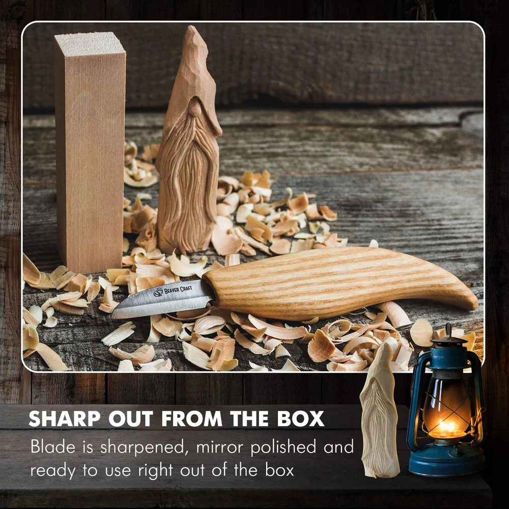 BeaverCraft took it a step further. They already have Comfort Bird Carving Kit and Dala Horse Wood Carving Tools Set. This time they decided to share some magic closer to Christmas. This is how they came up with Wizard Carving Kit. WHAT'S SO GOOD ABOUT BEGINNER WHITTLING KIT? RAZOR SHARP CHIP CARVING KNIFE BeaverCraft wood carving tools always come sharp right out of the box. And this time is not an exception. All wood carving knives are made with love in a country overflowing with beautiful landscapes - Ukraine. FEELS GOOD IN HAND One of the best BeaverCraft whittling knives - C2 is coming in the box. It feels really good in the hand, you'll lose touch with the real world working on your wizard. BASSWOOD The softest wood for a beginner to start with is basswood. This is why you get three wooden blocks in a wood carving kit. FREE PATTERNS It's a headache to figure out what you want to carve next and then find the pattern. Luckily BeaverCraft wood carving knives set provides you with that as well. STROPPING SUPPLIES INCLUDED Always take care of your whittling knives. Make sure to strop wood carving tools after each use. VIDEO GUIDE + BOOKLET BeaverCraft made sure to guide you through the whole process of wizard carving. This is why you'll get a detailed video guide mailed to you after purchase and a booklet in the box. WIZARD WILL CHANGE YOUR LIFE As you'll get a real wizard made yourself out of wood. A symbol of magic is going to throw light on your home. In order to work magic out of wood, scroll up and click the orange button "Buy Now" ! We wish you to have many hours of happy carving! Whittling Kit for Beginners: Wondering what to occupy yourself with next? Then wood carving would be the best bet to try out, don’t hesitate and check it out! Wood Carving Set: BeaverCraft wood carving kit for beginners allows you to work magic out of wood as you are going to make a wizard with the wood carving knives set from BeaverCraft. Wood Carving Kit for Beginners: You get everything you need to carve a wizard in a wood carving kit: wood carving knife C2 + 3 basswood blocks + 3 sandpapers + patterns. Woodworking Kit for Adults and Teens with a Tutorial: and, what's more important, you'll learn to carve a wizard out of wood with the most detailed step-by-step video guide.