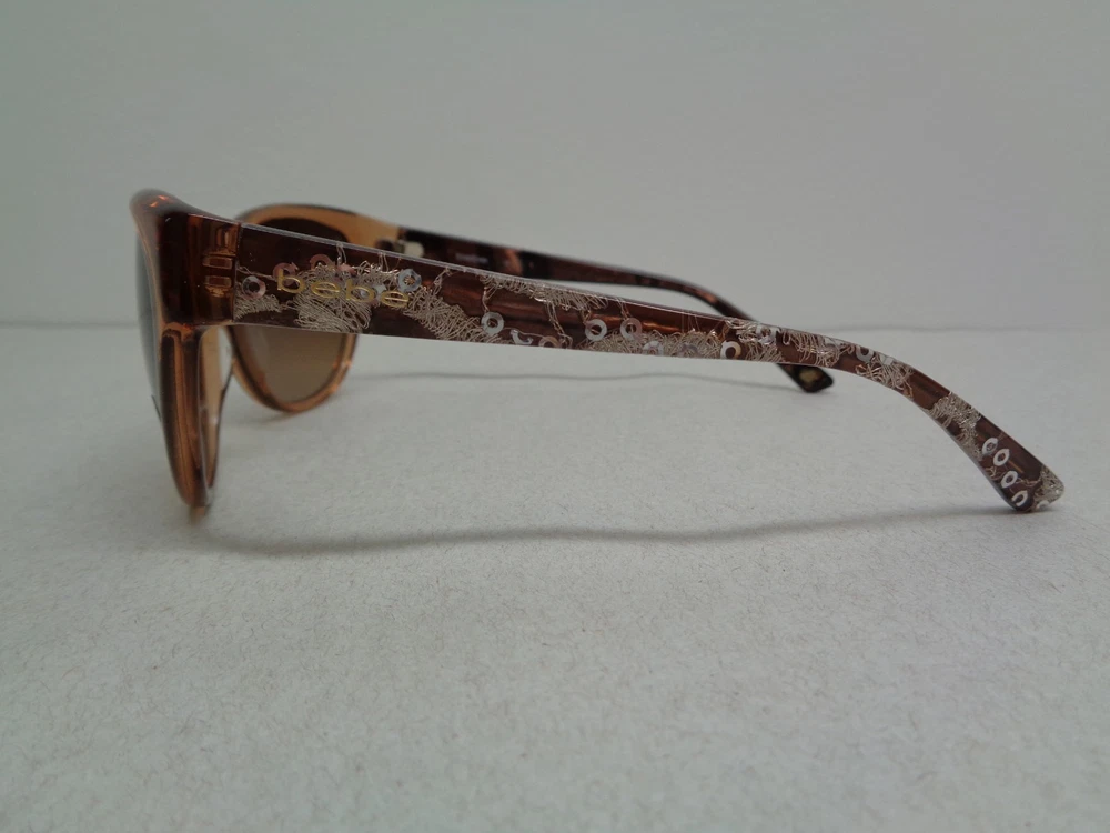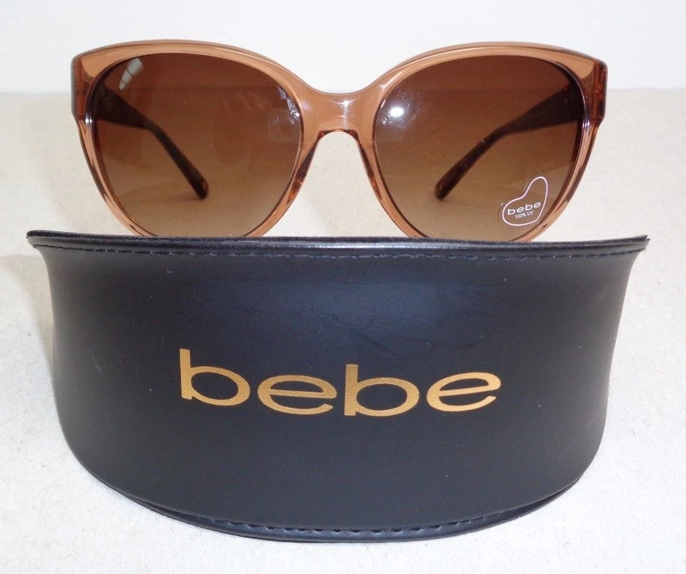 Bebe FOXY BB7079 Topaz Crystal Round Fashion Sunglasses New Womens Eyewear -Style: FOXY, BB7079 -Color: (210) Topaz Crystal -Plastic frame and arms -Brand detail at temples -Integrated nose pads -100% UV gradient protection -Lens width=56 -Bridge width=16 -Arm length=130 -Comes with case in picture