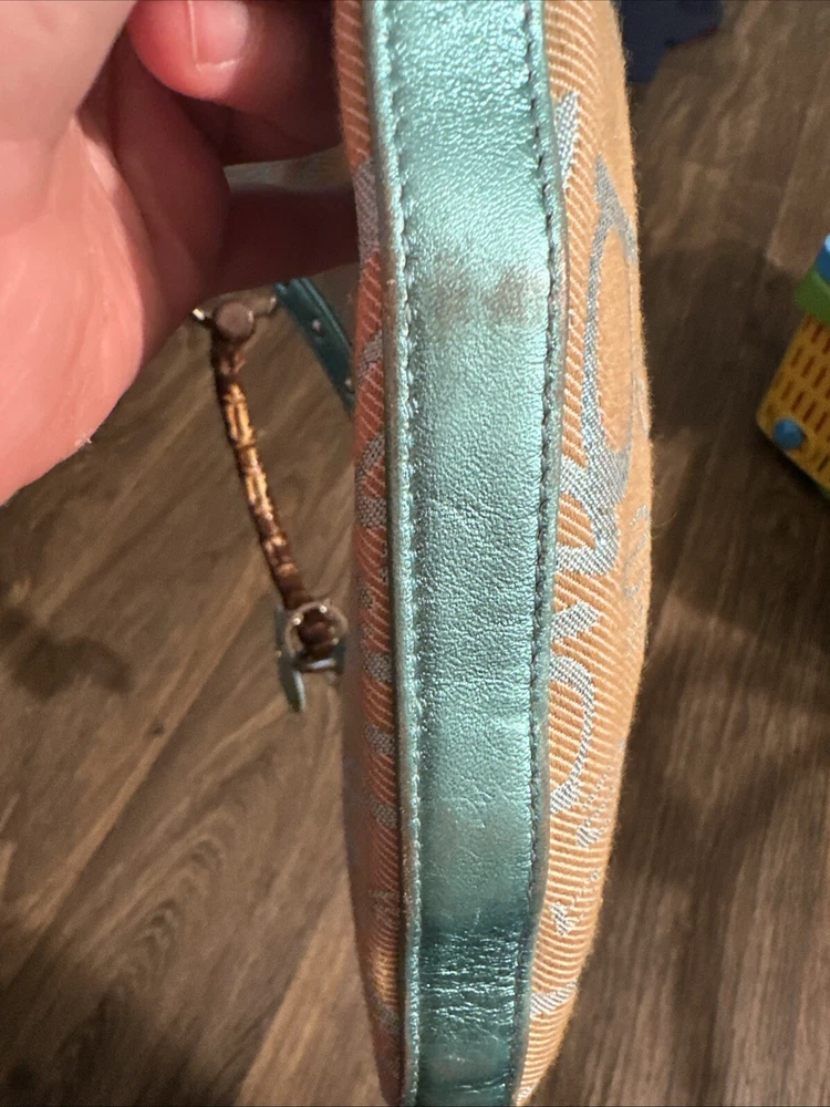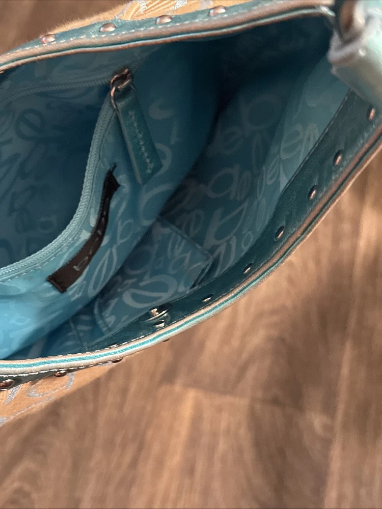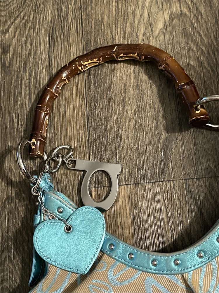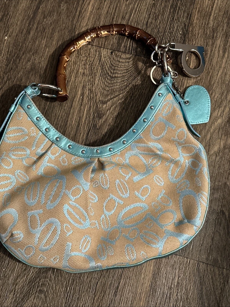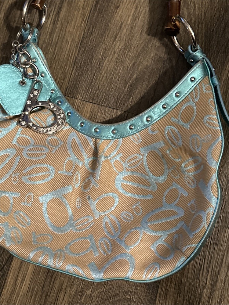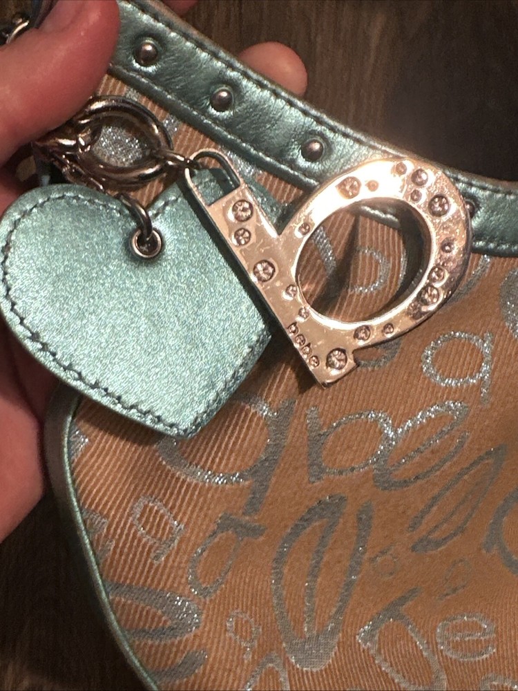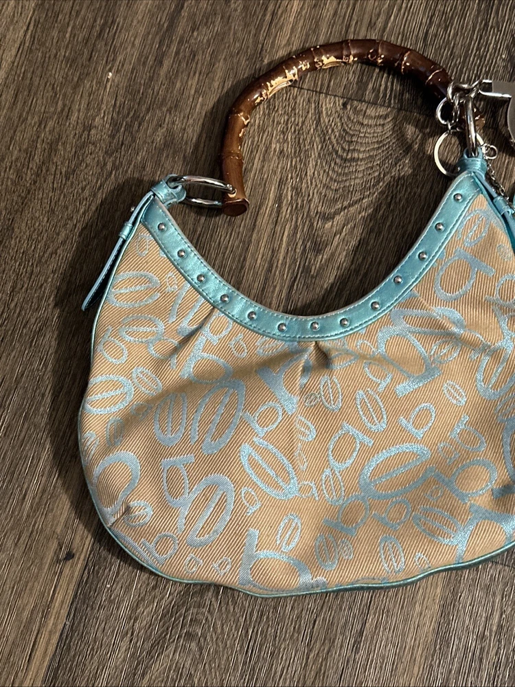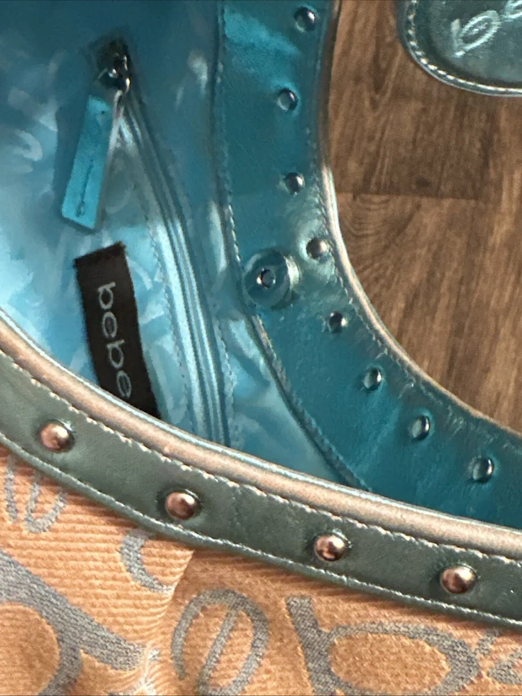 This Bebe shoulder bag is a total game-changer! The tan and blue combo is so chic, and the studded details give it an edgy yet elegant vibe. The wooden-like handle feels sturdy and adds a stylish touch while keeping it comfortable to carry. It’s surprisingly roomy without being bulky—perfect for essentials and more. The quality feels luxurious, and it instantly elevates any outfit, whether you're heading to work or a night out. Love how versatile and eye-catching it is!