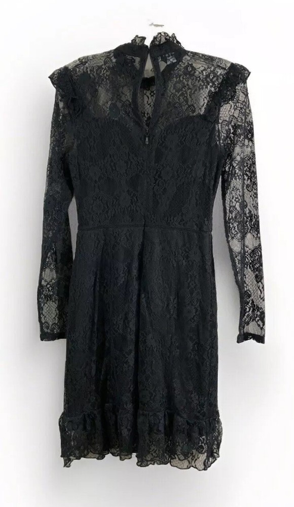 This Bebe mini dress is a stunning addition to any wardrobe. The black floral pattern is complemented by long sleeves and a laced back closure for a touch of elegance. The dress is size medium and has a short length, making it perfect for any occasion. The zip closure ensures a secure fit, while the lace fabric type adds a unique texture to the dress. The flower theme adds a touch of femininity to the overall style. Ideal for any fashion-conscious woman, this dress is a must-have for your collection.