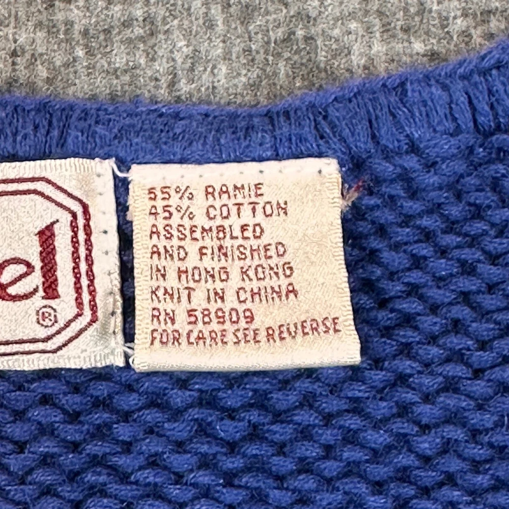Department: Women Garment Care: Machine Washable Theme: Classic Fabric Type: Knit Material: Ramie, Cotton Season: Fall, Spring, Winter Sleeve Length: Sleeveless Country/Region of Manufacture: Hong Kong Size: XL Personalize: No Size Type: Regular Type: Sweater Neckline: V-Neck Brand: Bechamel Color: Blue Occasion: Business, Casual, Party/Cocktail, Workwear Knit Style: Tight-Knit Vintage: Yes Pattern: Argyle/Diamond Style: Vest