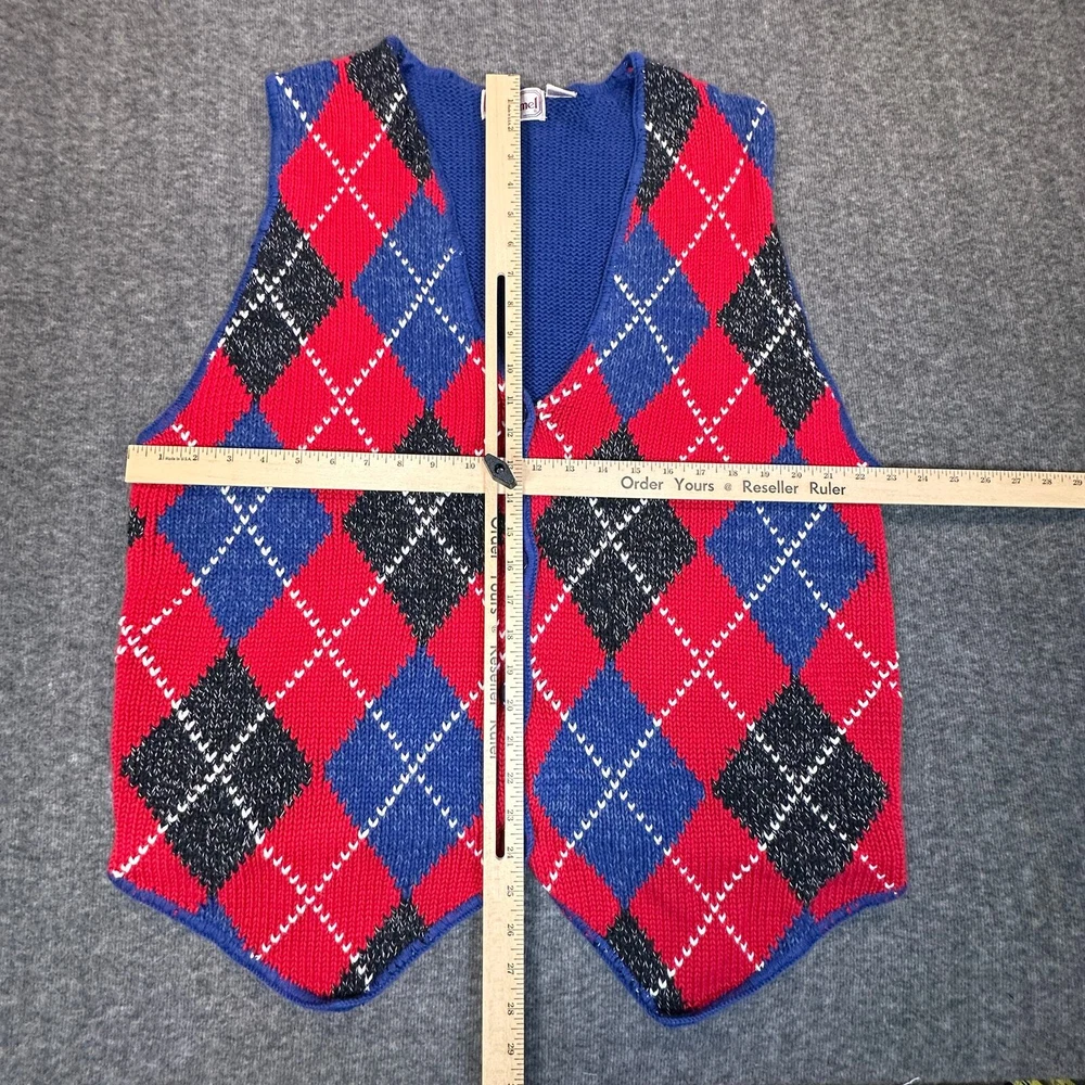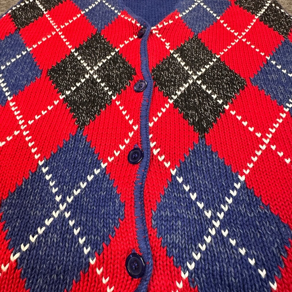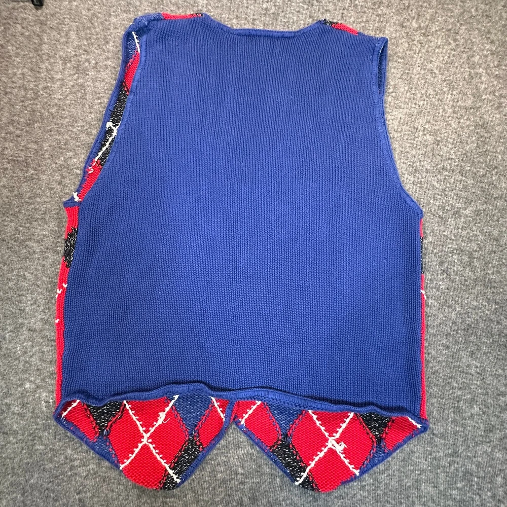 Bechamel Casual Vintage Sweater Vest Womens XL Red Blue Argyle Button Front