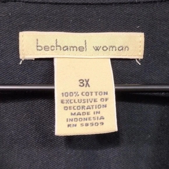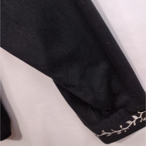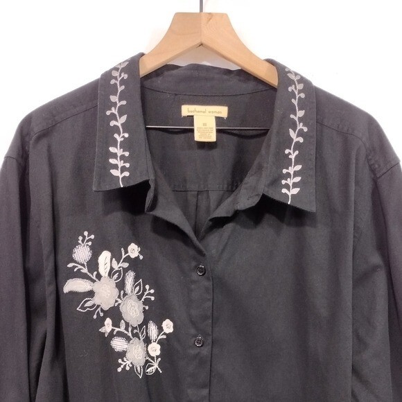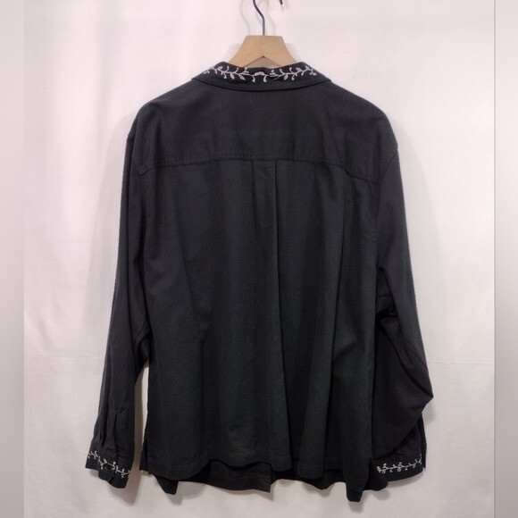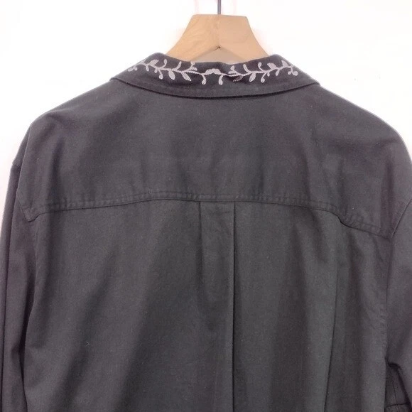Features Black White Embroidered Floral Collared Button front Pleated back Artsy Boho Retro Cottagecore Peasant Cotton Great Pre-Loved Condition SIZE 3X Measurements Pit to Pit: 26" Length: 30" Waist: Rise: Inseam: Length: Please check to be sure of fit Smoke Free Pets Free Please feel free to contact me for any questions or offer Bundle Discounts Offered Fast Shipping *4913-4706-24*