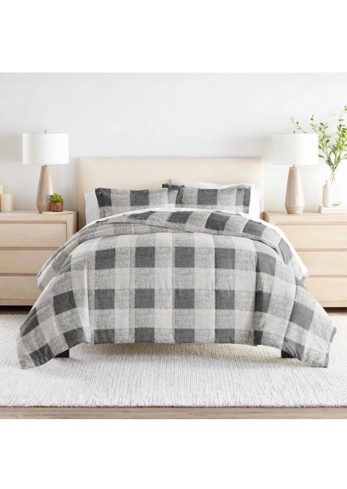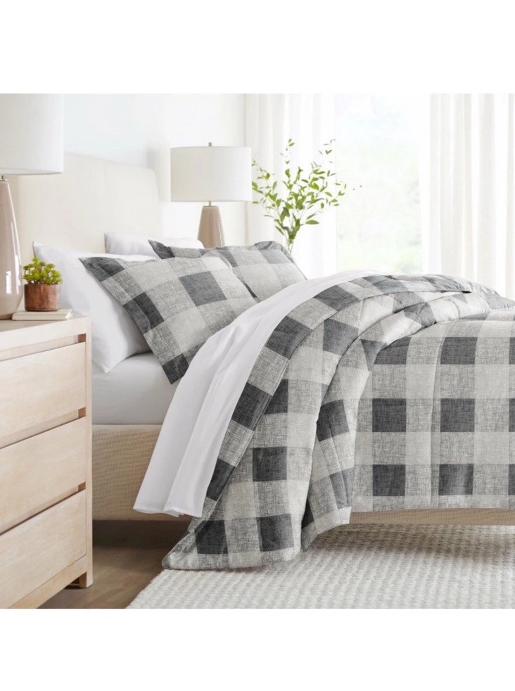 The Becky Cameron Bedding Set is a stylish and versatile addition to any bedroom, featuring a reversible gingham gray design that can suit both farmhouse and modern decor styles. Made from soft polyester material, this set includes a quilt and is suitable for machine wash care. Available in full and queen sizes, this bedding set by Becky Cameron offers comfort and style for a cozy night's sleep.