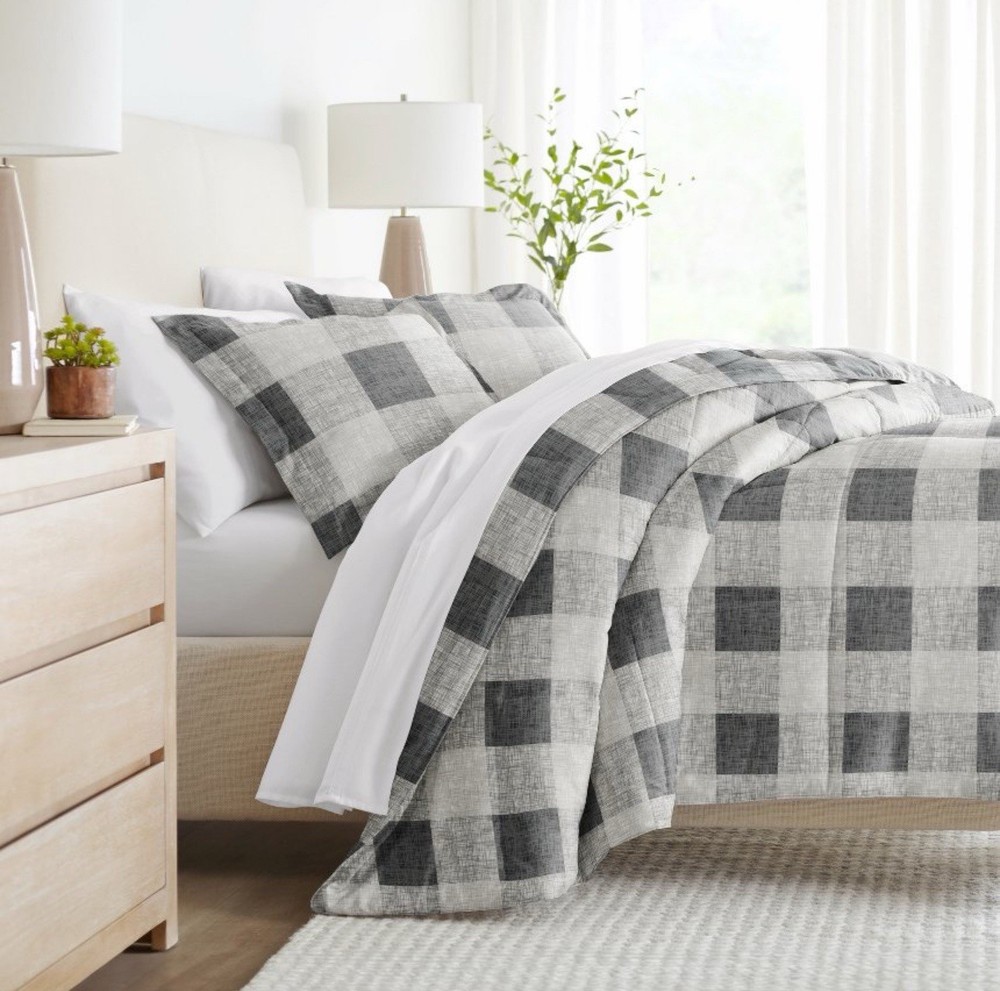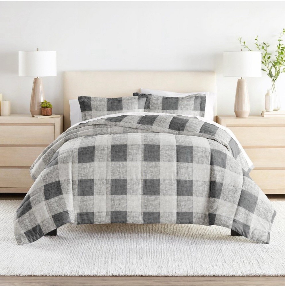 Becky Cameron Reversible Gray Gingham Microfiber Bedding Set Full Queen Size New