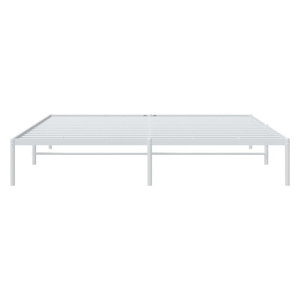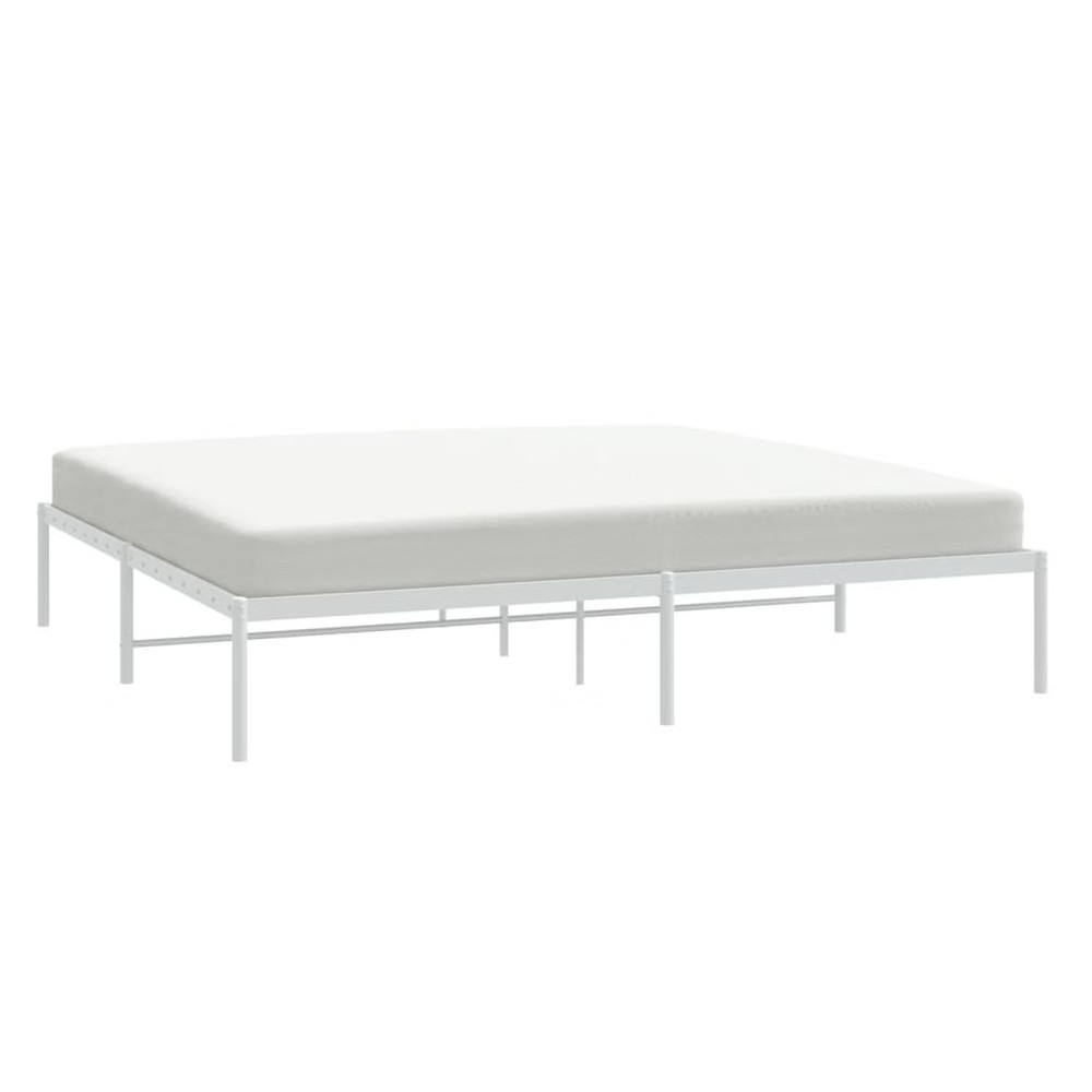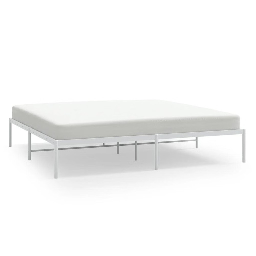 Size: Double size This double size metal bed frame offers a modern aesthetic, combining functionality with chic design. The sleek white powder-coated finish and sturdy steel construction provide both style and support, making it an ideal choice for contemporary bedrooms. Robust Construction: Made from high-grade steel, this frame offers stability and support for up to 2 people, making it a wise choice for long-term bedroom furniture. Modern Aesthetic: The fresh white finish helps this bed frame fit into various styles, from minimalist to modern, keeping your bedroom looking sharp and stylish. Comfortable Sleeping Experience: Breathable materials boost airflow for a comfy night's sleep, creating a welcoming retreat after a long day. Easy to Assemble: Comes with everything you need and clear instructions, so two people can get it set up quickly. Ideal Size: At 72 x 84 in, this double bed frame suits both spacious bedrooms and smaller areas where you want to maximize space. Color: White Shape: Rectangular Material: Metal Powder-Coated Steel Finish: Powder-Coated Indoor/Outdoor: Indoor Only Cover Included: No Room: Bedroom Capacity: Double Maximum Number of People: 2 Dimensions: 73.6 x 86.2 x 12.2 in (W x L x H) Leg Height: 12.2 in Weight: 45.19 lbs Swings: No Delivery Contains: Bed frame Assembly Required: Yes Recommended Number of People for Assembly: 2