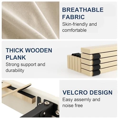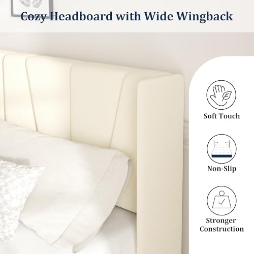 Return Policy Fast Delivery Trusted seller Queen Bed Frame with Headboard and Wingback, Velvet Upholstered Platform Bed, Mattress Foundation with Wooden Slat Support, No Box Spring Needed, Easy Assembly, Noise Free, Beige Product Description MODERN WINGBACK HEADBOARD: This queen size bed frame comes with an upholstered headboard and wingboard, velvet fabric wrapped in soft foam, which not only provides you with a cozy touch, but also adds a sophisticated and elegant visual feeling to the entire bedroom.(Recommended with 8-12" mattresses) STRONG AND DURABLE: The overall frame of this platform bed is made of metal iron frame, and the center support bar adopts cross design plus 10 wooden slats to support the mattress, which ensures the firmness and stability of the bed frame, load bearing capacity: 1000 lbs. NOISE-FREE DESIGN: The bed frame queen size slats are secured with Velcro and can be directly paired with a latex mattress, memory foam mattress, or innerspring mattress without the need for a box spring, simplifying the assembly process while minimizing noise. (Mattress not included with this bed frame) UNDER BED STORAGE SPACE: The bottom of the bed frame is 6.7” high, which is easy to clean under the bed, and you can also store suitcases, storage boxes and other unused items under the bed, saving space in the bedroom EASY TO ASSEMBLE: Enjoy the perfect combination of efficiency and convenience. All components of the bed frame and the required installation tools are packaged together, and all parts are clearly labeled, the package comes with installation instructions, adults can be completed in less than an hour Shipping Returns Payment Shipping Shipping is FREE to all addresses other than APO/PO boxes in the lower 48 states. All our stock ships from US-based warehouses. Shipped via USPS or UPS (depending on location and package weight) Unless stated otherwise, all orders will ship within 24-72 hours of your payment being processed. Check our feedback to see the great reviews of FAST shipping we offer. Returns Seller does not accept returns Payment We currently accept payment via eBay managed payments only. Once payment is cleared, we will dispatch your shipment within 1-3 business days. Please refer to the "Shipping" tab for more information regarding shipping speed to your destination.