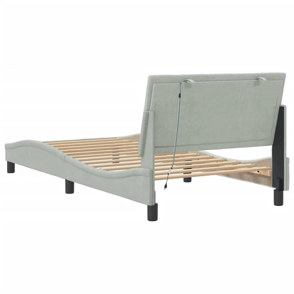 $ 159.83Bed Frame with LED without Mattress "Hanko" Light Gray 53.9"x74.8" Velvet