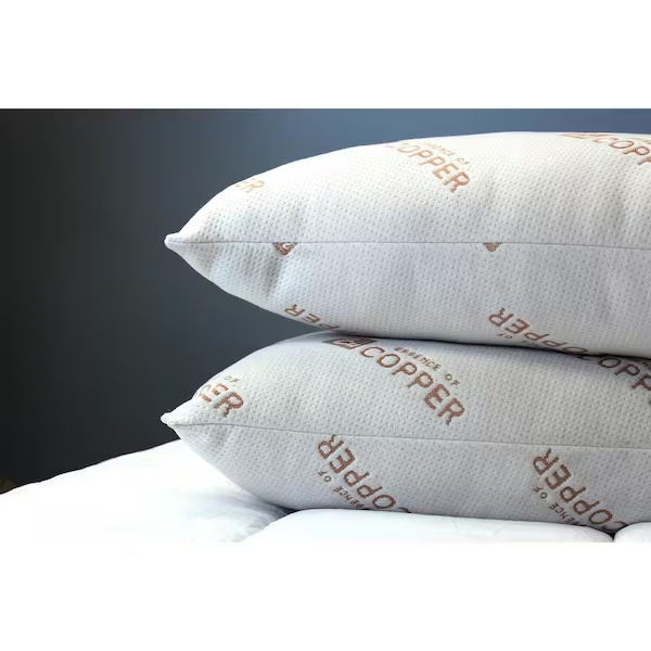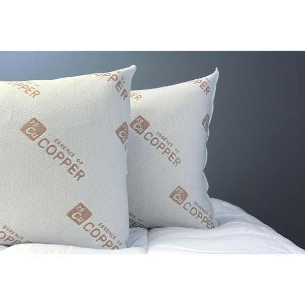 Bed Pillow Hypoallergenic Down Alternative Antimicrobial Copper Infused Set of 2 Sleep Cleaner with this naturally antimicrobial copper infused pillow twin pack. These pillows contain copper-infused fibers that may help inhibit the outgrowth of some bacteria. The combination of Patent Pending Blend 33 fiber fill and soft knit fabric offers unbelievable bounce back so you'll never have to worry about re-fluffing your pillow throughout the night again. Medium/firm support for all sleep positions Naturally antimicrobial - shields against bacteria, fungi, and odor Machine wash and dry for easy care High-loft, hypo-allergenic fiber fill Soft touch and unique fabric unlike anything in the market allows more airflow and breath-ability