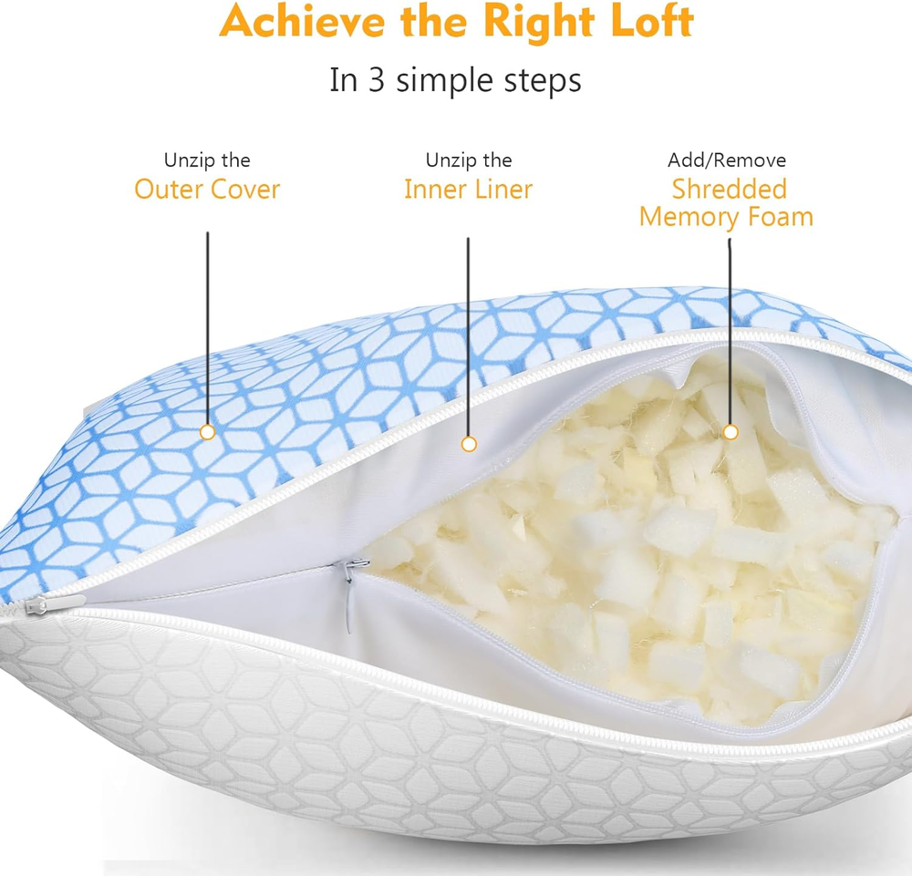 Store New Arrivals Add to Favorite View Feedback Contact Bed Pillow Queen Size 1 Pack, Shredded Memory Foam Pillow Adjustable,Cooling Pillow Soft and Supportive for Side Back Stomach Sleepers Description Unit Count 1.0 Count Size Queen (1 Pack) Color Blue Pattern Solid Fabric Type The Cooling Side-55% Polyester, 45% Cool Fabric, The Other Side-65% Polyester, 35% Viscose Made from Bamboo Material Memory Foam, Rayon Use for Head Item Weight 4.4 pounds Shape Rectangular Age Range (Description) Adult Recommended Uses For Product Sleeping Item Firmness Description Firm Fill Material Memory Foam+Microfiber Blend Number of Pieces 1 Special Feature Cooling Product Dimensions 30"L x 20"W Product Care Instructions Machine Wash, Tumble Dry Balanced Support & Cloud-Like Softness: Engineered with cross-cut shredded memory foam, this pillow provides firm yet gentle support to cradle your neck. Wrapped in a premium microfiber blend, it offers a luxuriously soft surface for comfort—merging the best of both worlds for a truly restful sleep. Cooling and Soft Fabric Pillow Covers: Double sided cover--cooling fabric and rayon made from bamboo, the viscose made from bamboo side is soft, the cooling side is smooth and makes you feel cool, and both sides are breathable, you can enjoy cooling nights in summer with the cooling side and a soft feeling the rest of the time. Adjustable Firmness: Compared with traditional one-piece memory foam pillow, the Love Attitude shredded memory foam pillow is is designed to satisfy stomach sleepers, back sleepers and side sleepers’ different needs, you can ADD or REMOVE foam filling to suit your size, shape or sleep position. Premium Materials: All fill material is made of clean and new cross-cut memory foam and microfiber blend, we don’t use any leftovers. You can buy all the Love Attitude shredded memory foam pillows with confidence. Product description Indulge in luxurious, cloud-cushioned sleep on Love Attitude Pillows. The video showcases the product in use. The video guides you through product setup. The video compares multiple products. The video shows the product being unpacked. cooling adjustable pillows Merchant Video Experience cloud-like comfort for a dreamy night's sleep. Ergonomic Support Meets Cloud Comfort Dual-Comfort Hybrid Design : Combines the posture-correcting firmness of traditional memory foam with the cloud-soft embrace of premium microfiber fill — no more "too hard" or "too flat" compromises. Stay Cool All Night Side A - Bamboo-Derived Rayon : ✓ Naturally breathable (37% higher airflow than cotton) ✓ Silk-soft texture for year-round comfort Tired of waking up drenched? Side B - Active Cooling Fabric : ✓ Phase-change technology absorbs excess body heat ✓ Smooth, cool-to-touch surface maintains optimal sleep temperature Night sweats stealing your sleep? Our cooling pillow fights back. Sink into a refreshing breeze Coolness activated by contact Discover a world of cozy comfort. Height-Adjustable Pillow Love Attitude Shredded Memory Foam Pillows Adjustable loft design allows personalized height customization. Open both zippers to add or remove filling for your ideal loft. The video showcases the product in use. The video guides you through product setup. The video compares multiple products. The video shows the product being unpacked. love attitude cooling adjustable pillows Merchant Video Sink into cloud-soft memory foam for weightless comfort. Touch-activated cooling Love Attitude Cooling Pillows Experience an instant chill that lasts all night — from the very first touch. Sink into a refreshing breeze — coolness activated by contact. The video showcases the product in use. The video guides you through product setup. The video compares multiple products. The video shows the product being unpacked. shredded memory foam pillows Merchant Video Enjoy relaxed, comfortable sleep on Love Attitude Pillows ABOUT US We offer the best prices around on high quality products. Our E-store includes media such as books, movies, music and games while offering electronics, toys, sporting apparel, clothing, tools, general home, garden items and more. SHIPPING We are always working hard to ensure your package arrives as soon as possible. Please understand that some factors like weather, high postal traffic, and the performance of shipping companies are outside of our control. We offer free shipping to the lower 48 states and ship within 2 business days of payment, usually sooner. We do not accept P.O. Boxes. Please provide a physical address. For shipping outside of the continental USA, we only use eBay's Global Shipping Program.The item is shipped to KY and then sent to the rest of the world. International customers are responsible for all duties and taxes. Continue to check out in order to calculate costs for shipping the item to your country. Messages regarding eBay's Global Shipping Program MUST be directed at eBay EXCLUSIVELY. RETURNS We offer a 30-Day Return Policy on items which you are not completely satisfied with. You have the option for a full-refund or an exchange of the item. No returns are available on items shipped outside of the USA. PAYMENT We accept PayPal. CONTACT US This page content is yet to come Please ad us to your favorite seller and visit again later Thank You CUSTOMER SATISFACTION We try our very best to make sure every customer is completely satisfied. If there's a problem, message us! We're happy to help. WE ACCEPT Copyright © 2021 AutoDS. | All Rights Reserved
