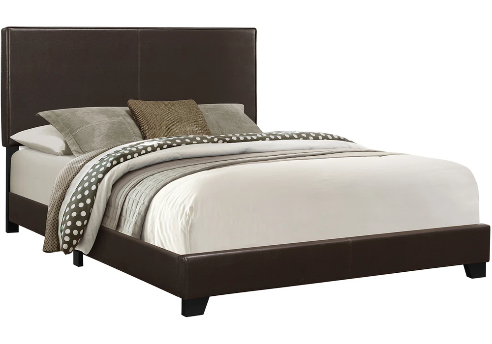 Bed, Queen Size, Bedroom, Upholstered, Brown Leather Look, Transitional