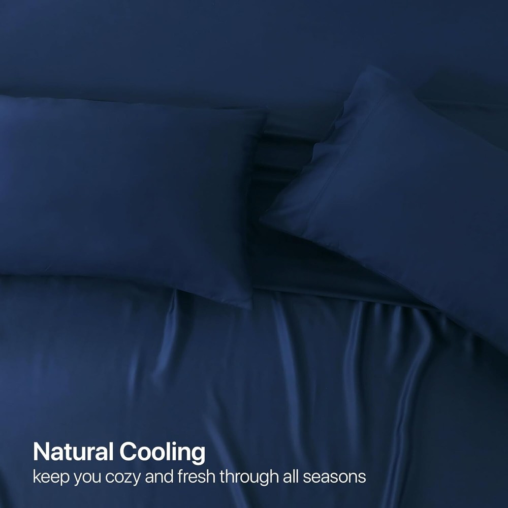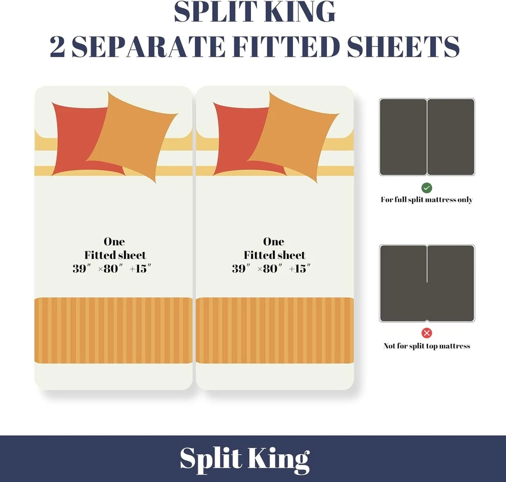 Bed Sheets Set Split King Size 5pc, 100% Rayon Derived from Bamboo, Cooling Sheets with Fitted Deep Pockets, Hotel Luxury Bedding Sheets & Pillowcases Fabric: Upgrade your sleep quality with our bedding made from 100% rayon derived from bamboo, crafted for durability that surpasses those made from cotton, ensuring a silkier touch and longevity like no other. Cooling & Dry: Made from rayon derived from bamboo, our bedding set is designed to be breathable and moisture-wicking, keeping you cozy and fresh through all seasons. Great Fit: With a 16" pocket and elastic band, the fitted sheet included in the set SATISFACTION GUARANTEEs a snug fit with mattresses. Enjoy seamless nights with sheets that never slide. Sustainability: Pure naturally sourced material and an OEKO-TEX Standard 100 certificate show our commitment to a more healthy and sustainable lifestyle. Enjoy nature's power for more restful nights. Satisfaction: Embrace our commitment to satisfaction with a hassle-free return policy, backed by exceptional pre and post-purchase assistance. Feel free to contact me if you need ANY kind of help.