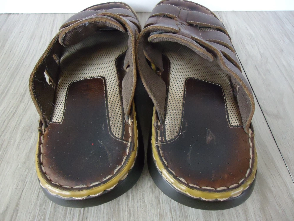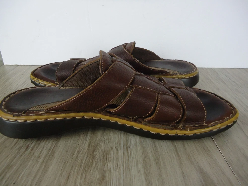 Outsole Material:SyntheticColor:BrownDepartment:MenUpper Material:LeatherClosure:Slip OnCharacter:FishermanFeatures:Slip OnTheme:90s, Beach, Coastal, Comfort, Fisherman, Grandpa, Slip On, Summer, VTG, Y2K, mall, mall4Seller Notes:“Preowned used condition with signs of wear and use as shown in the pictures.”Style:Slip-OnUS Shoe Size:10Brand:Bed StuProduct Line:Fisherman Chunky Y2KType:Sandal