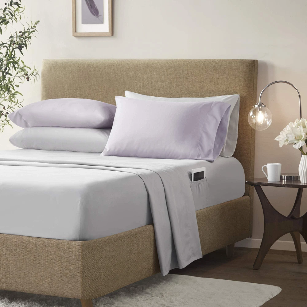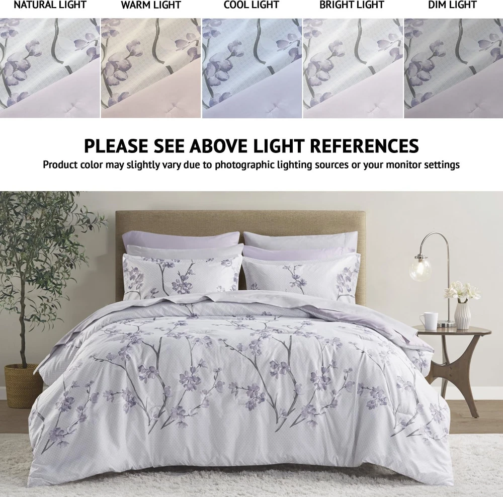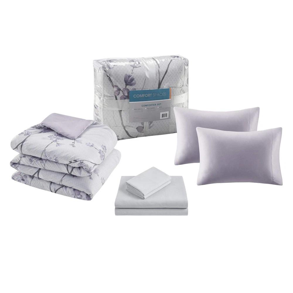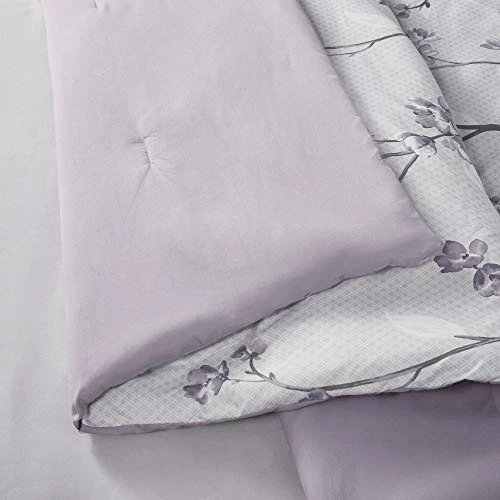 The Kate Complete Bed in a Bag Set offers a refreshing traditional style to match your bedroom décor. Floral design in vermicelli quilting adorns the face of the comforter and a solid dark purple reverse brings a relaxing and pleasant update to your bedroom. Matching floral print sham and solid color pillowcase create a charming cottage look. Also included is a complete sheet set in grey that features a fitted sheet with a side pocket on each side for extra bedside storage. SERVICE - If you don't absolutely love this product, return it within 30 days for a full . We'll work with you to resolve any issue and ensure that you're satisfied with your experience. The Kate Complete Bed in a Bag Set offers a refreshing feminine and modern floral update to your beddrom décor Kate comforter set offers feminine allure of floral in soft purple hue bedding set paired with brushed soft microfiber and lightweight cover for all season comfort For your convenience the fitted sheet comes with a side pocket on each side for extra bedside storage that's perfect for your small electronic devices. Set includes: 1 Comforter: 90"W x 90"L, 2 Standard Shams: 20"W x 26"L, 1 Flat Sheet: 90"W x 102"L, 1 Fitted Sheet: 60"W x 80"L + 15"D, 4 Pillowcases: 20"W x 30"L Care instructions: Machine Wash