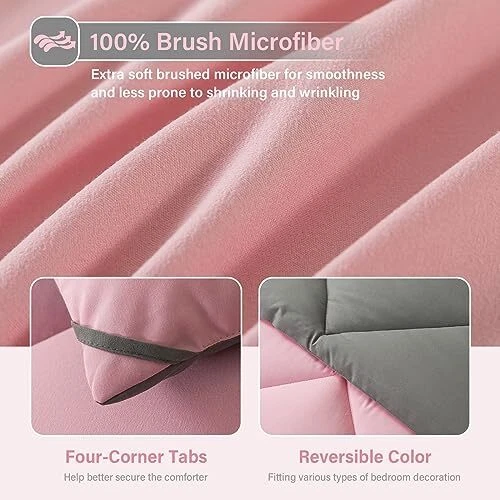 Return Policy Fast Delivery Trusted seller Bed in a Bag Full Comforter Sets 7pcs All Season Solid Down Alternative Bedding Sets Pink and Grey with Comforter, Pillow Shams, Flat Sheet, Fitted Sheet and Pillowcases Product Description Cloud-like Touch: 100% brushed microfiber material- offers an exceptionally soft and comfortable feeling. 7 Pieces Comforter Set provides coziness without crinkly noise; Filled with whole-piece upgraded down alternative inner filling- it’s breathable, lightweight and long-lasting. Reversible Diamond Pattern Design: The bedding comforter set adopt a pink and grey two tones color double sided with design of the diamond pattern, not only perfectly fitting various types of bedroom decoration but also helps evenly distribute the fiberfill and prevents shifting for maximum durability. Exquisite Craftsmanship & Elaborate Design: bed set is made with delicate sewing and four-corner tabs can help better secure the comforter; The all-round elastic deep pocket fitted sheet fits mattress max up to 14" depth. That can always keep non-slip no matter how you twist and turn in your bed. What You Can Get: Full size 7 pieces bedding set includes 1 Comforter 82"x86", 2 Pillow Shams 20"x26", 1 Flat Sheet 81"x96" , 1 Fitted Sheet 54"x75"+14" and 2 Pillowcase 20"x30"– comforter set is available for all seasons. Good choice as a BIRTHDAY GIFT or special holiday gift. Easy Care: To clean the down alternative comforters: Machine wash separately on cold water with similar colors.On gentle cycle, tumble dry on low heat, do not bleach to keep the color vibrant. Best Service: If you have any questions, please feel free to contact us. We offer a after-sales service. Thank you so much:) Shipping Returns Payment Shipping Shipping is FREE to all addresses other than APO/PO boxes in the lower 48 states. All our stock ships from US-based warehouses. Shipped via USPS or UPS (depending on location and package weight) Unless stated otherwise, all orders will ship within 24-72 hours of your payment being processed. Check our feedback to see the great reviews of FAST shipping we offer. Returns Seller does not accept returns Payment We currently accept payment via eBay managed payments only. Once payment is cleared, we will dispatch your shipment within 1-3 business days. Please refer to the "Shipping" tab for more information regarding shipping speed to your destination.