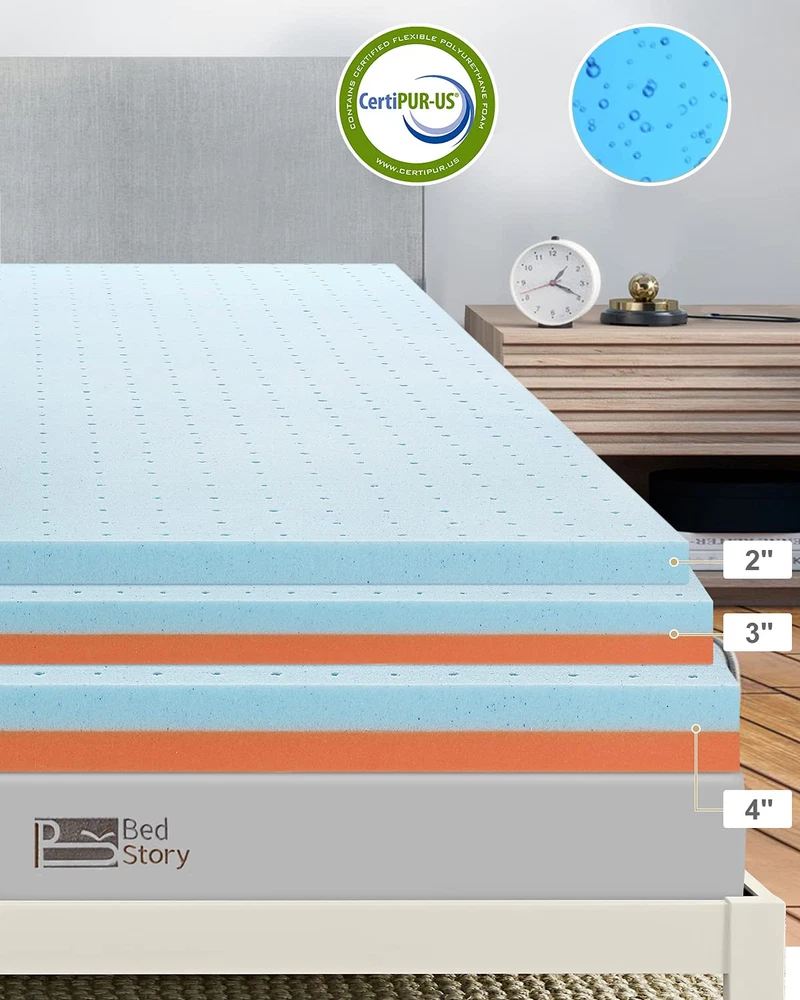 Contouring Comfort: Designed to correctly align the spine and cradle your curves, this queen size mattress topper helps relax as you are catching some Z’s Two Layer Design: The 3 inch mattress topper is crafted from gel memory foam and copper supportive foam. Together they can offer you additional comfort and adequate support during sleep Benefits of Copper: The advanced copper-infused topper is extremely efficient in maintaining the freshness of your foam bed topper Choose Your Plush: The memory foam toppers come in 2/ 3/ 4 inches for customized softness. Just select the height to suit your preferred level of comfort What You Get: BedStory memory foam mattress toppers come with CertiPUR-US foam. And we’ve got you covered for manufacturing defects BedStory 3 Inch Gel Memory Foam Mattress Topper Queen