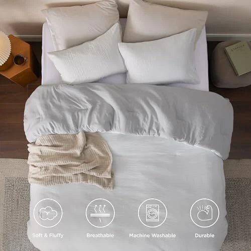 Return Policy Fast Delivery Trusted seller Bedding Comforter Sets Queen, Reversible Grey Prewashed Bed Comforter for All Seasons, 3 Pieces Warm Soft Bed Set, 1 Lightweight Comforter (90"x90") and 2 Pillowcases (20"x26") Product Description Extra Soft: This prewashed comforter is delightfully soft and gentle on the skin. Its cotton-like texture delivers a supremely cozy slumber. Long-Lasting: This queen comforter for holiday is designed with excellent wear resistance, and can withstand washes without pilling or deforming. Subtle Elegance: These reversible bedding comforter sets come in a wide range of elegant hues with a complementing secondary color on the reverse side, instantly giving your space a makeover. Safe Material: This fluffy comforter is Standard 100 by OEKO-TEX certified for meeting the highest testing criteria for harmful chemicals and has been found harmless for humans. Gift your loved ones with coziness that is also safe. Easy Care: The comforter set is machine-washable and easy to maintain. Simply machine wash in cold water on gentle cycles and tumble dry low for a like-new restoration. Shipping Returns Payment Shipping Shipping is FREE to all addresses other than APO/PO boxes in the lower 48 states. All our stock ships from US-based warehouses. Shipped via USPS or UPS (depending on location and package weight) Unless stated otherwise, all orders will ship within 24-72 hours of your payment being processed. Check our feedback to see the great reviews of FAST shipping we offer. Returns Seller does not accept returns Payment We currently accept payment via eBay managed payments only. Once payment is cleared, we will dispatch your shipment within 1-3 business days. Please refer to the "Shipping" tab for more information regarding shipping speed to your destination.