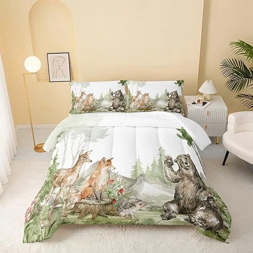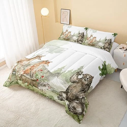 Return Policy Fast Delivery Trusted seller Black Bear Watercolour Bedding Set Cute Sika Deer Fox Hedgehog Comforter Set for Boys Girls Teen Room Decoration Wild Plants 3D Quilt Set Decoration Queen Size 1 Comforter Set 2 Pillowcases Product Description DESIGN DETAILS:The comforter's front side is designed with Black Bear Watercolour Cute Sika Deer Fox Hedgehog to create a fantastic fairytale world. create a warm, sunny, childlike and hopeful world for your kids. Colorful Animal Bedding Sets Suitable for All Seasons COMFORTER SET BEDDING FOR KIDS:Queen size comes with 1 comforter(90" x 90") and 2 pillowcases(20”x30”).THE SHEETS ARE NOT INCLUDED! WONDERFUL GIFT:Bringing joy in your bed with love. , print design animal comforter set is perfect for any kid’s bedroom whether it’s a boy or a girlSoft lightweight microfiber polyester but still provides enough warmth.he Cute animal themed A great gift for birthdays, Christmas, and any other occasions! PRECAUTIONARY NOTE:Be Baked in the Sun and Tapped Gently During Baking for Fluffy.Machine wash in cold water, gentle cycle, tumble dry on low or dry naturally, do not bleach. Enjoy years of easy care and cleaning. Your machine-washable, queen size sheets require no fabric softener or ironing, resist stains, and won't shrink or ball up like cotton. 100% SERVICE GUARANTEE:All of our products are made using carefully selected fabrics down to the best fibers so that your child can be safe and comfortable and you can be worry-free. Our US-based customer service representative will answer your request within 24 hours. Shipping Returns Payment Shipping Shipping is FREE to all addresses other than APO/PO boxes in the lower 48 states. All our stock ships from US-based warehouses. Shipped via USPS or UPS (depending on location and package weight) Unless stated otherwise, all orders will ship within 24-72 hours of your payment being processed. Check our feedback to see the great reviews of FAST shipping we offer. Returns Seller does not accept returns Payment We currently accept payment via eBay managed payments only. Once payment is cleared, we will dispatch your shipment within 1-3 business days. Please refer to the "Shipping" tab for more information regarding shipping speed to your destination.