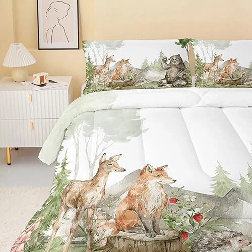 Bedding Set Cute Sika Deer Fox Hedgehog Comforter Queen Black Bear Watercolour
