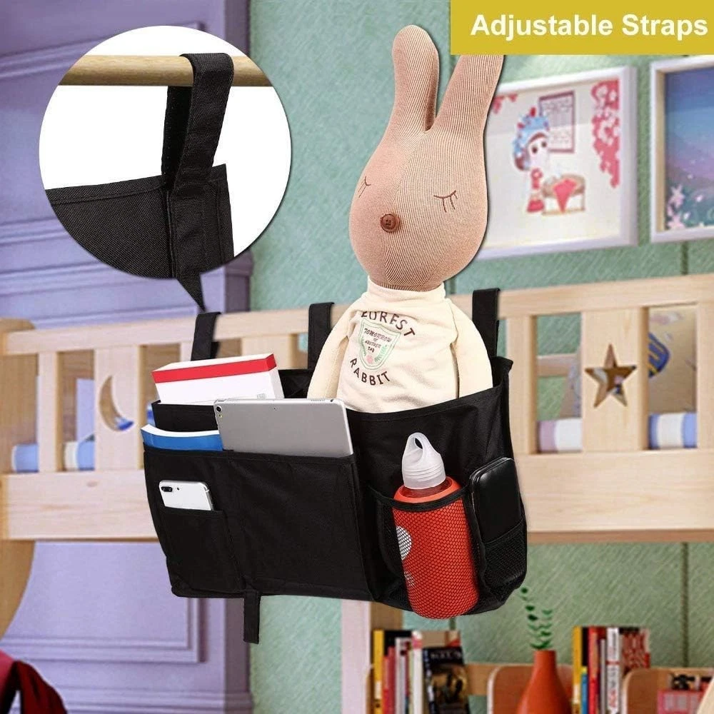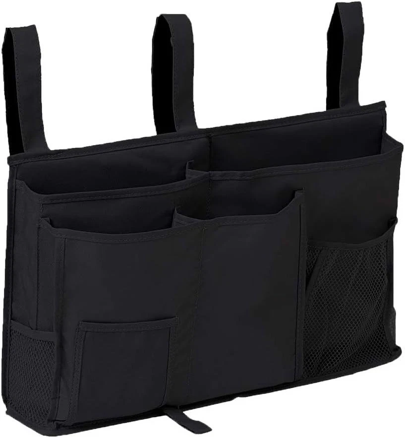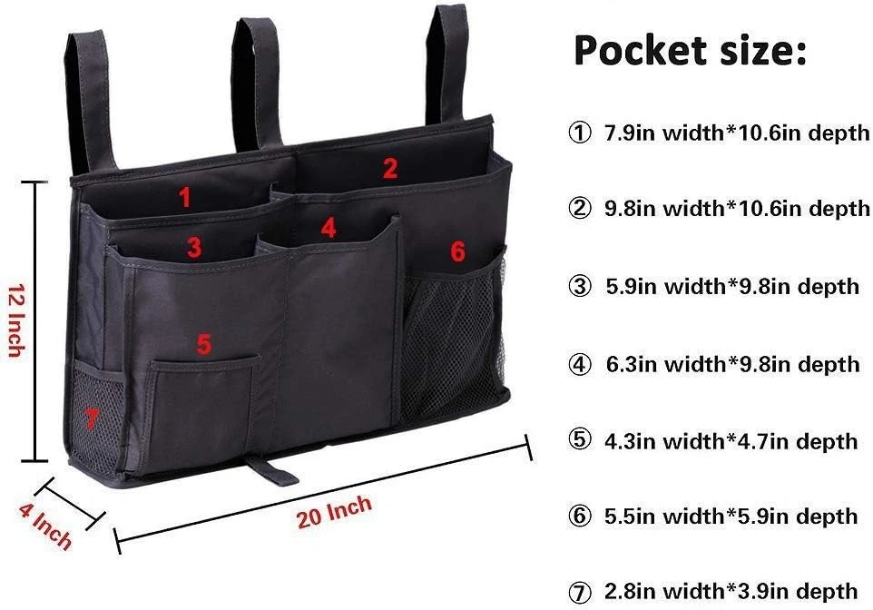 MULTI-PURPOSE - This bunk bed organizer equipped with 8 various pockets, you can hang on the bedside to storage books, magazines, notebooks, pens, and some snacks and drinks. Save the limited amount of space in dorm rooms and decreases the clutter. You can also to put your remotes, phones, & tablets and flashlight in the bed storage caddy when you get up at night, you can find these items easily. It is also great for hang on the baby stroller or baby bed to organizer the items that baby need. GREAT QUALITY - The bedside storage organizer is made of waterproof Oxford Fabric and convenient Velcro, Dacron Mesh, durable enough to withstand heavy weight. Warm Gray color, perfectly matches most popular trendy home painting color themes. VERY EASY TO HANGING - Our bed storage pocket is easy to install. No assembly required and very easy to use, just attach the 3 velcro strap design on to any headboard or bed rail, save your time and energy. PERFECT DEMENSIONS - The size of this bedside storage caddy dorm is 19.2L * 11.4W * 3.9H inches, works great on any chair and Bunk and Hospital Beds, Dorm Rooms Bed Rails, baby stroller, table tray next to the sofa.