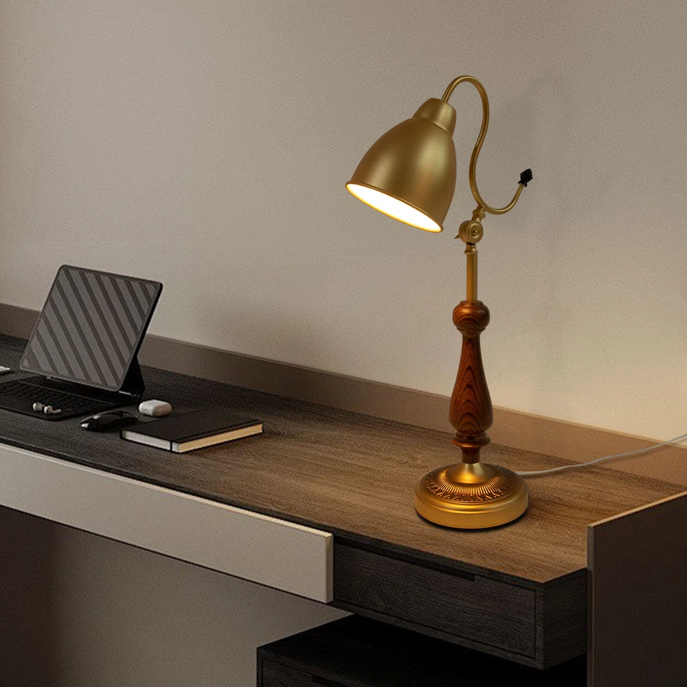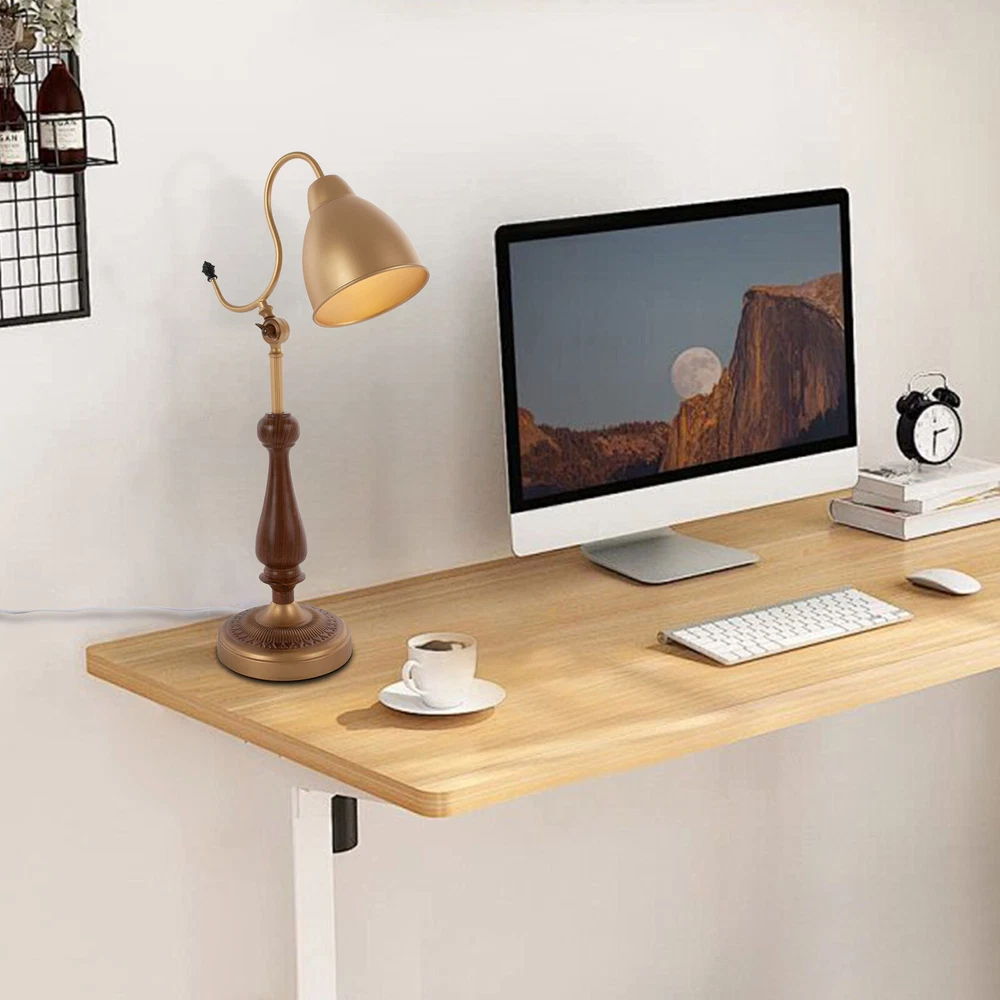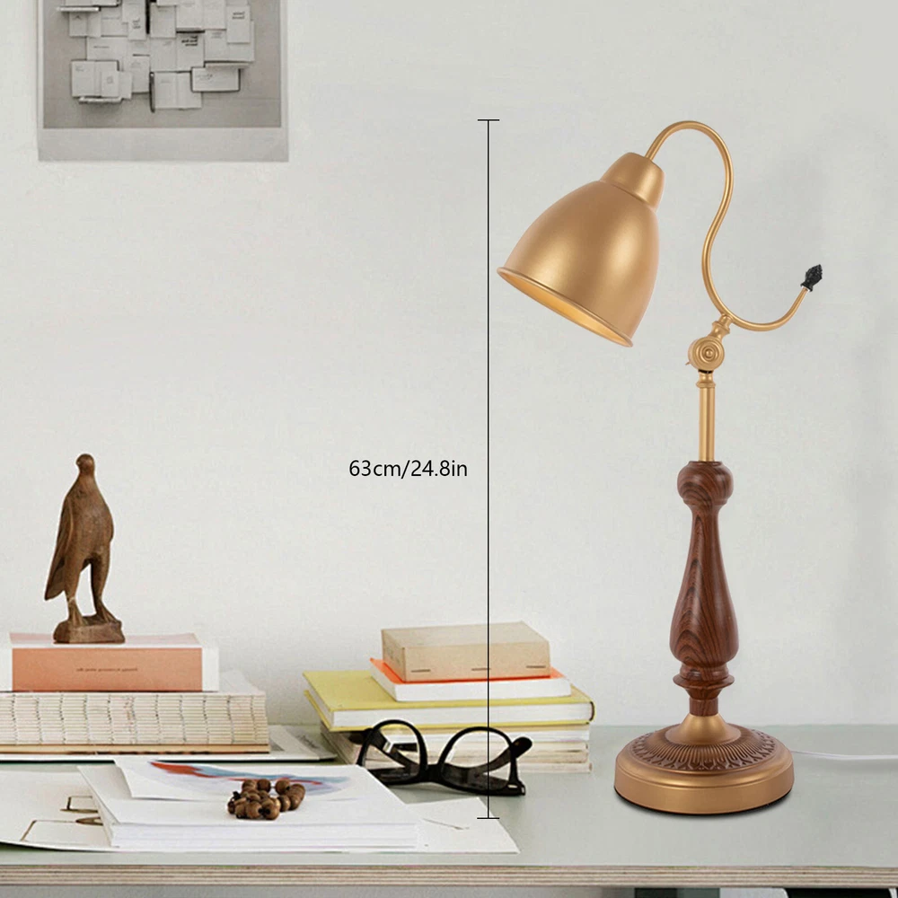 Bedside Table Lamp, Bedroom Desk Light Desktop Lamp, Tabletop Desk Lamp Gold Description This durable table lamp will be your excellent nightly reading and sleeping companion! With its golden body, it can provide you with bright light while showing its elegance. It is not only a practical home lighting tool but also a piece of art to decorate your life and light up your space, adding a unique and elegant charm to your home environment. Key Features Build to Last: Made of iron, walnut wood, and copper using a spray painting process, this product is wear-resistant, corrosion-resistant, and durable, ensuring your long-term use. Elegant Appearance: The golden color tone, exquisitely carved base, and smooth lines give this product an elegant appearance, making it an excellent decoration in your room. Warm Atmosphere: The E26 light source (not included) can emit soft light through the lampshade, warmly accompanying you every night. Easy to Use: The 4.92ft power cord with a switch design facilitates your daily use and allows you to use this table lamp without worrying about the distance. Protective Package: To prevent the product from being damaged during transportation, we packed it with foam to protect your products to the maximum extent possible. Simple Clean-up: With a simple structure and a smooth surface, you only need to clean this product with a towel when dust accumulates. Ideal Gift: The product combines practicality and beauty, making it ideal for housewarming or birthday gifts for your family, loved ones, friends, and children. Customer Service: We aim to provide quality products and services. If you have any problems, please feel free to contact us. We will reply and solve the problem for you as soon as possible. Details Sturdy Base: The lamp base (7.08" in diameter) with an anti-slip mat improves the stability of this product without easily shaking, so you can use it confidently. Smooth Edges: The smooth and burr-free edges enhance the beauty of the product and better care for your skin when using and cleaning it. Application With a lighting area of 53.82 ft², it is suitable for studies, living rooms, bedrooms, hotels, cafes, children's rooms, desks, office desks, and other indoor places. Specifications Color: Gold Lamp Type: Table Lamp Material: Iron, Copper, Walnut Wood Process: Spray Painting Assembly Required: Yes Mount Type: Tabletop Indoor/Outdoor Usage: Indoor Power Source: Corded Electric Plug Type: US Standard Efficiency: E Light Source: 1*E26 (Not Included) Voltage: 110V Max. Bulb Power: 40W Power Cord Length: 1.5m/4.92ft Illuminated Area: 5m²/53.82ft² Lampshade Diameter: 15cm/5.9in Product Height: 63cm/24.8in Base Diameter: 18cm/7.08in Package Included 1* Table Lamp Notes Please check the size carefully before ordering. Please note that this product does not include a light bulb. You will need to purchase an E26 light bulb yourself. Please use the lamp within the applicable voltage range and clean lamps regularly. Please cut off the power supply when you clean the light or replace light bulbs. Please allow the slight color difference caused by the shooting light and 1-3cm error due to manual measurement, and make sure you do not mind before you order. Payment Delivery details Terms of sales About us Contact us Payment We accept ebay payment 。 Fees such as import duties, taxes are not included in the item price or shipping costs. These charges are the buyer's responsibility. Delivery details Shipping: 2-9 working days to: USA Terms of sales We maintain high standards of excellence and strive for hundred percent customer satisfaction. Feedback is very important to us. We hope that you contact us immediately before you give neutral or negative feedback, so that we can address your concerns. It is impossible to address issues if we do not know about them! About us Your satis faction is our ultimate goal. We work hard to earn your trust and future business. Our certified technicians have tested each item before shipping. The unit comes with 1 year limited warranty on all manufacturing defects. a) If you receive a defective item, you may return it or ask for a discount. Please contact us within 14 days after you receive the package. b) What you returned must be intact and in its original packaging as re? u. Customer is responsible for shipping costs of the returned item. c) We will cover the cost of shipping back t with the shipping rate indicated in the registration page. We will send you a new unit or refund the full payment you paid. Thank you. Contact us Business Hour Business Hour: Monday To Friday: 8:30 AM to 5:00 PM (Beijing China time) Due to time zones, our reply to your questions may not be immediately. But within above working time, we will reply your email within 24 hours. If it's non-workdays, please kindly be patient and wait till Monday. Please contact us with ebay message. Please feel free to contact us if you have any questions. Monday To Friday: 8:30 AM to 5:00 PM (Beijing China time) Due to time zones, our reply to your questions may not be immediately. But within above working time, we will reply your email within 24 hours. If it's non-workdays, please kindly be patient and wait till Monday. Please contact us with ebay message. Please feel free to contact us if you have any questions.