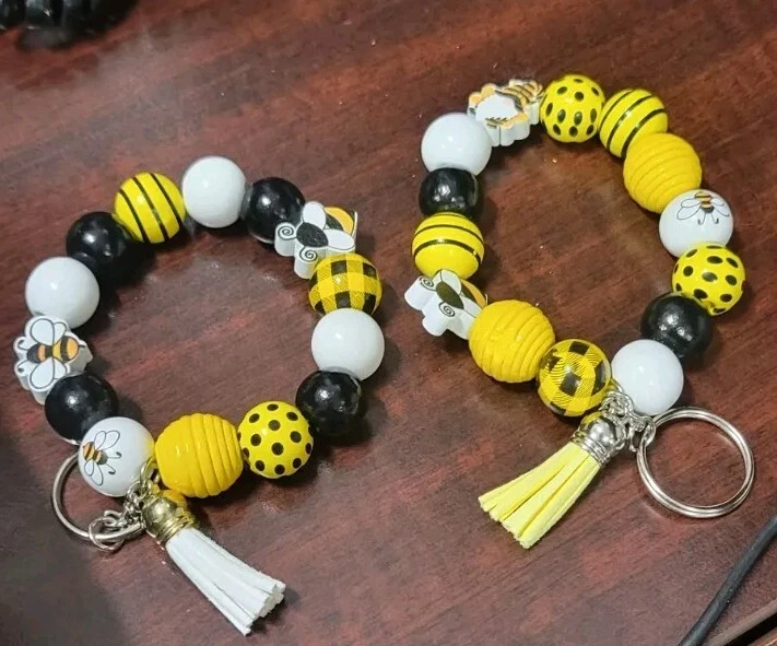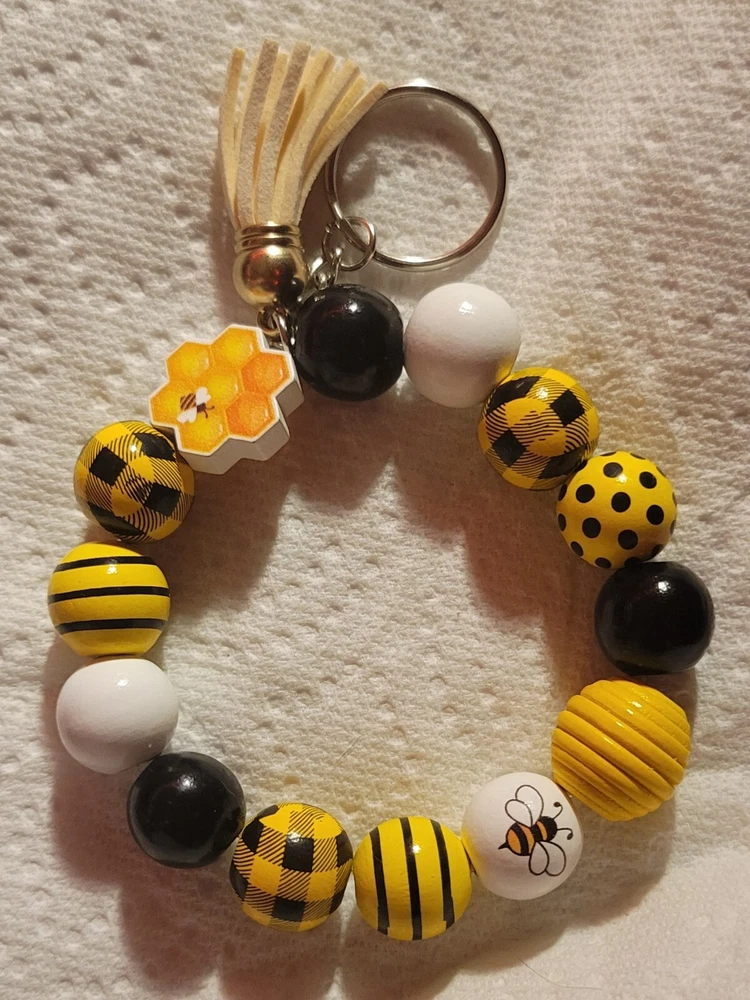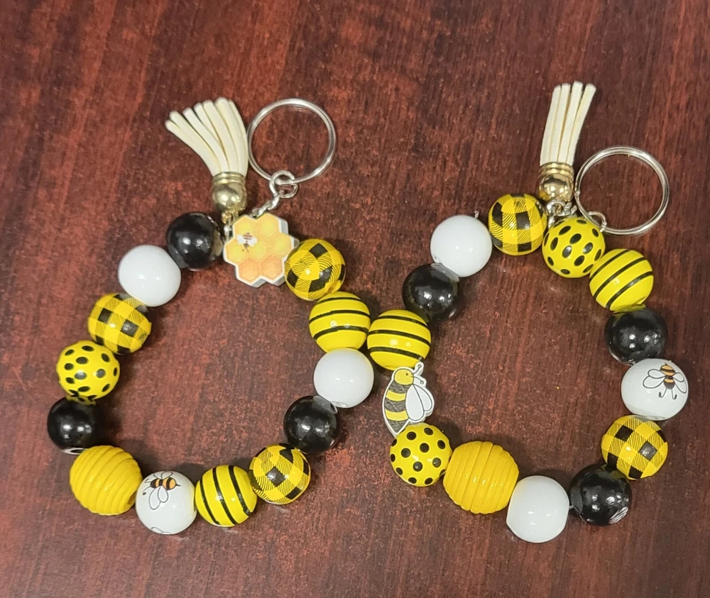 Add a touch of nature-inspired style to your keychain collection with this charming bee-themed beaded keychain. Perfect for people who love accessorizing with unique and whimsical pieces, this keychain features intricate beading and a cute bee design that is sure to bring a smile to your face. Whether you're a nature lover or just looking for a fun and quirky addition to your keychain, this beaded keychain is the perfect choice.