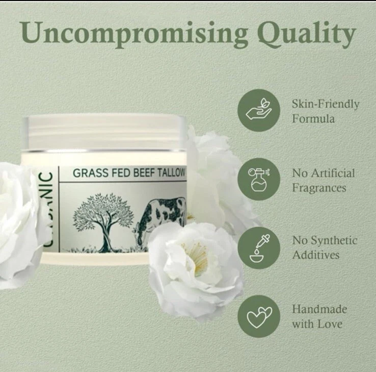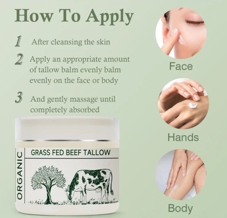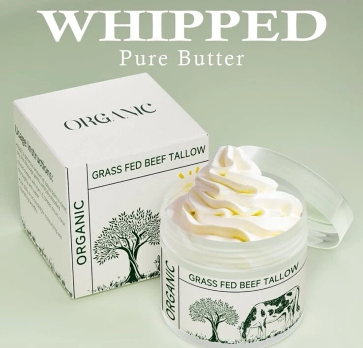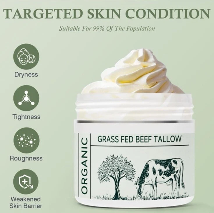 Beef Tallow, Tallow Face Moisturizer, Beef Tallow for Skin, Unscented 100% Organic Beef Tallow Blam Grass Fed Finished Whipped Tallow Face Cream Moisturizer Body Lotion Skin Care for Sensitive Skin