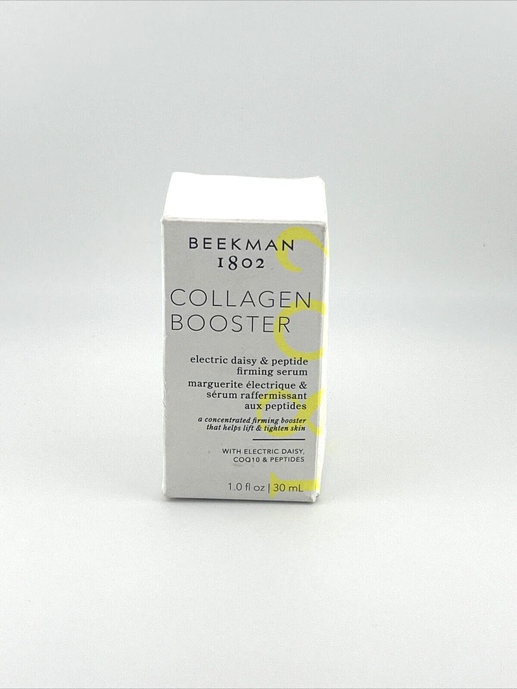 Beekman 1802 Collagen Booster Electric Daisy & Peptide Firming Serum - 1.0 oz | New Revitalize your skin with Beekman 1802 Collagen Booster Electric Daisy & Peptide Firming Serum , a powerful formula designed to lift, firm, and smooth the skin. Infused with Electric Daisy and peptides, this lightweight serum boosts collagen production, helping to reduce the appearance of fine lines and wrinkles while enhancing skin elasticity. Perfect for all skin types, it provides deep hydration and leaves your skin feeling firm, plump, and youthful. Features: 1.0 oz full-size bottle, new and unused Enriched with Electric Daisy and peptides to promote collagen production Clinically proven to firm and smooth the skin Lightweight, fast-absorbing formula suitable for all skin types Free from parabens, sulfates, and artificial fragrances Benefits: Helps reduce the appearance of fine lines and wrinkles Boosts skin's elasticity and firmness for a youthful look Provides deep hydration and nourishment for softer, smoother skin Lightweight and quick-absorbing, perfect for daily use under moisturizer or makeup Give your skin the firming boost it deserves with Beekman 1802 Collagen Booster Electric Daisy & Peptide Firming Serum , a luxurious treatment for radiant, youthful skin.