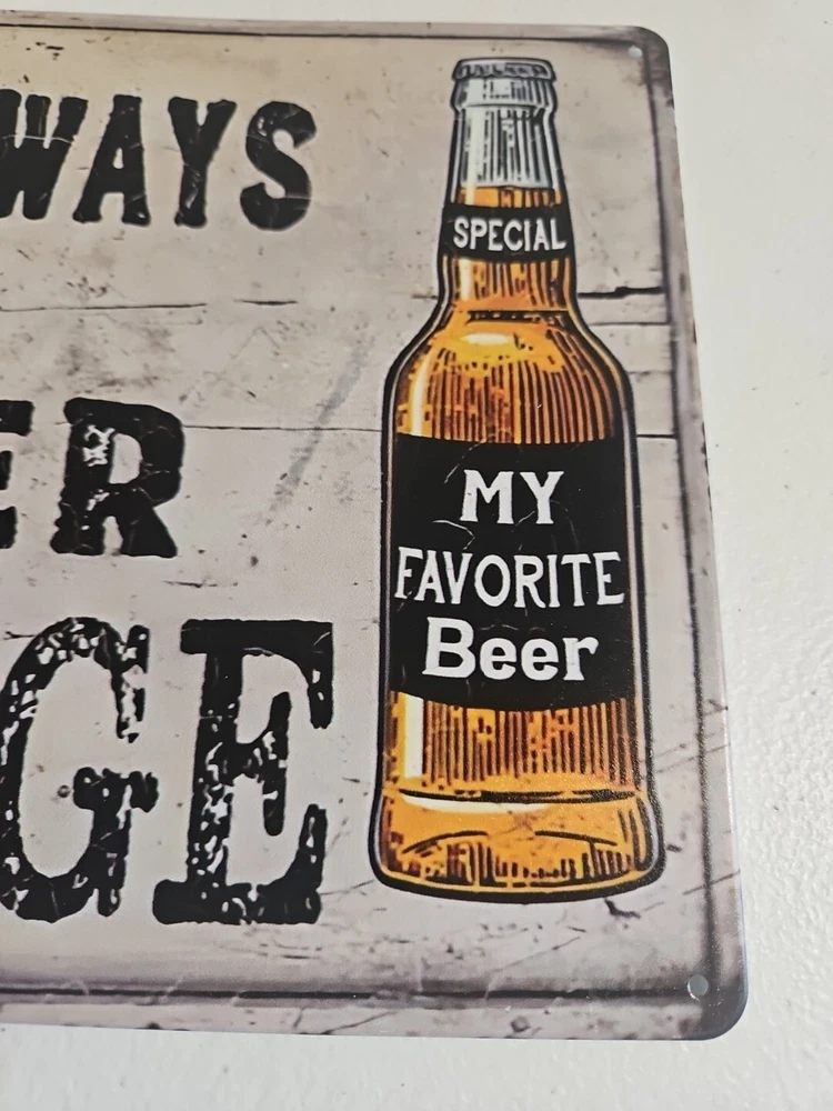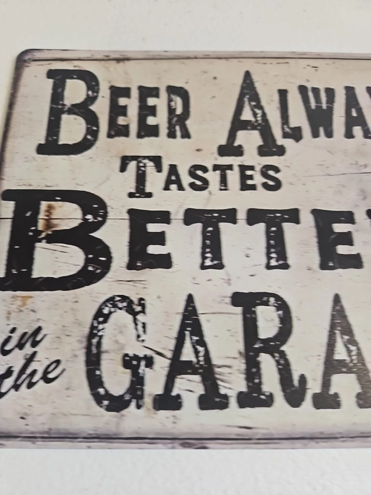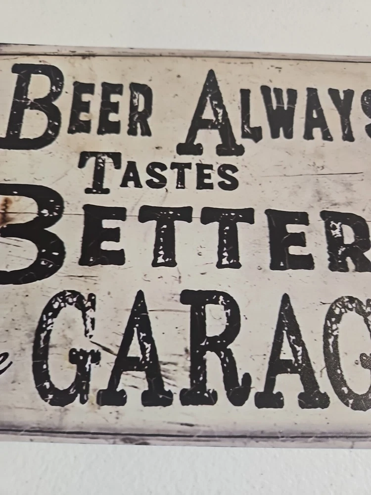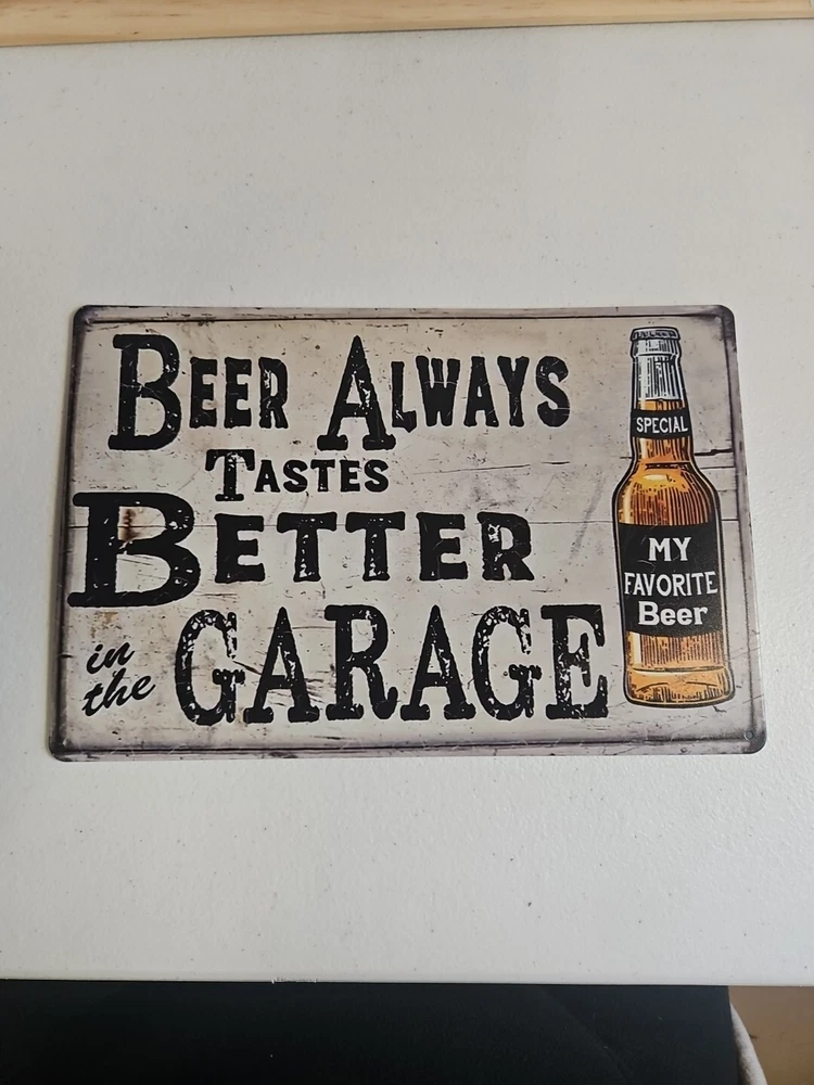 Add some rustic charm to your garage with this decorative metal sign that boasts a quaint, primitive style. The sign features a humorous message that's sure to elicit a laugh, and its hanging and wall-mounted design makes it easy to display. Measuring 8x12 inches, this sign is perfect for any garage or man cave, and its metallic finish adds a touch of industrial flair to your decor. Crafted from high-quality metal, this sign is built to last and requires no additional parts to hang or display. Its colorful design and rusty look make it a great addition to any space, and its rectangular shape and horizontal orientation make it a perfect fit for your wall or door. Bring some personality to your garage with this unique and eye-catching sign that's sure to be a conversation starter.