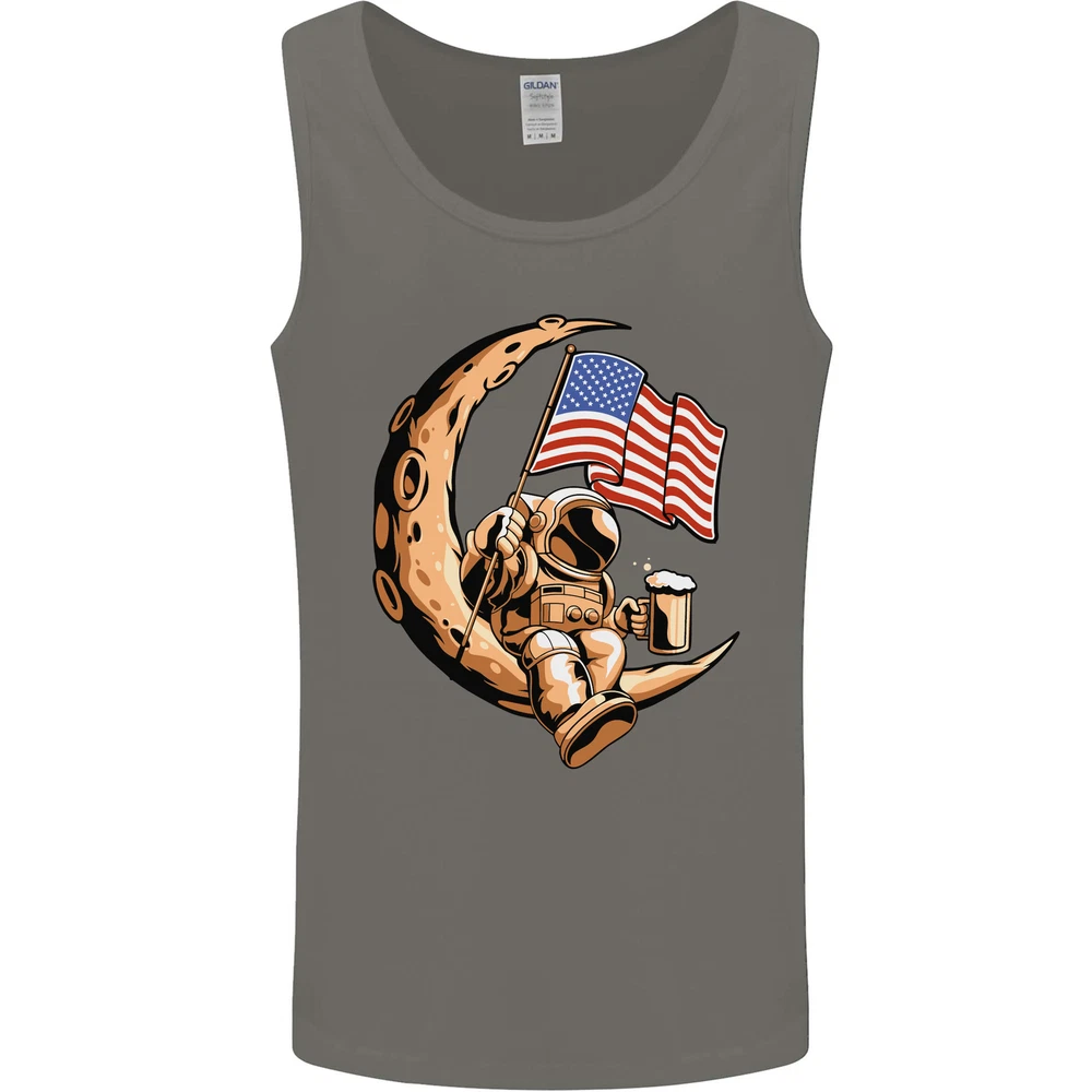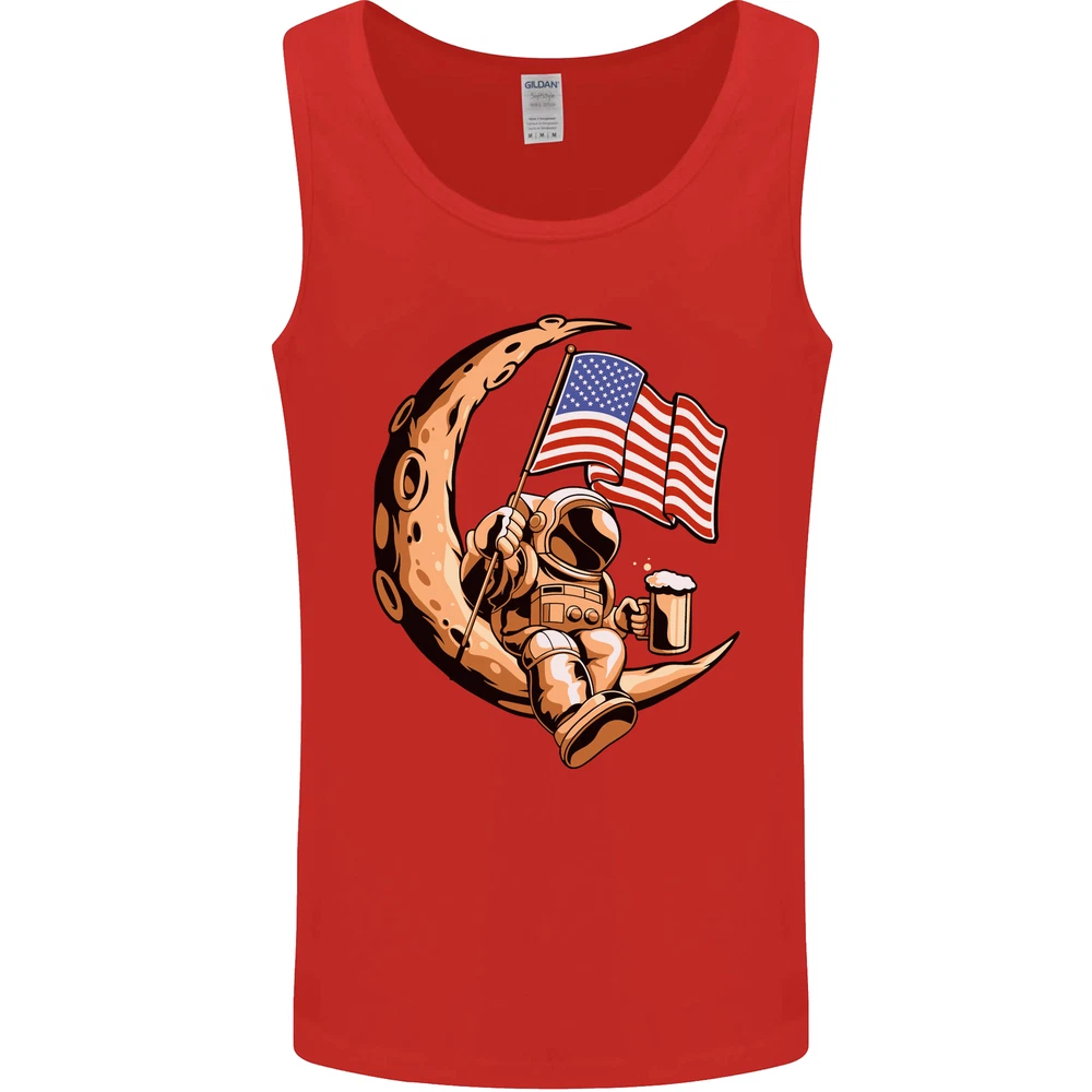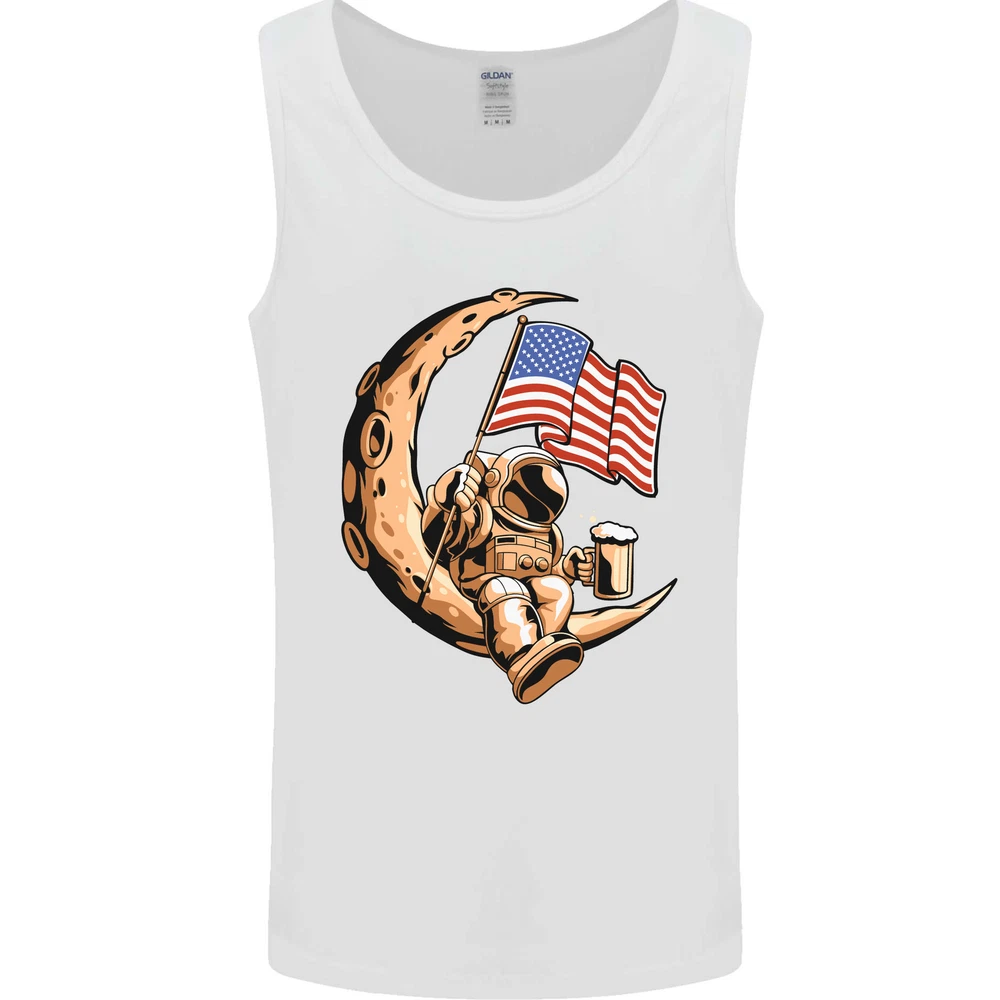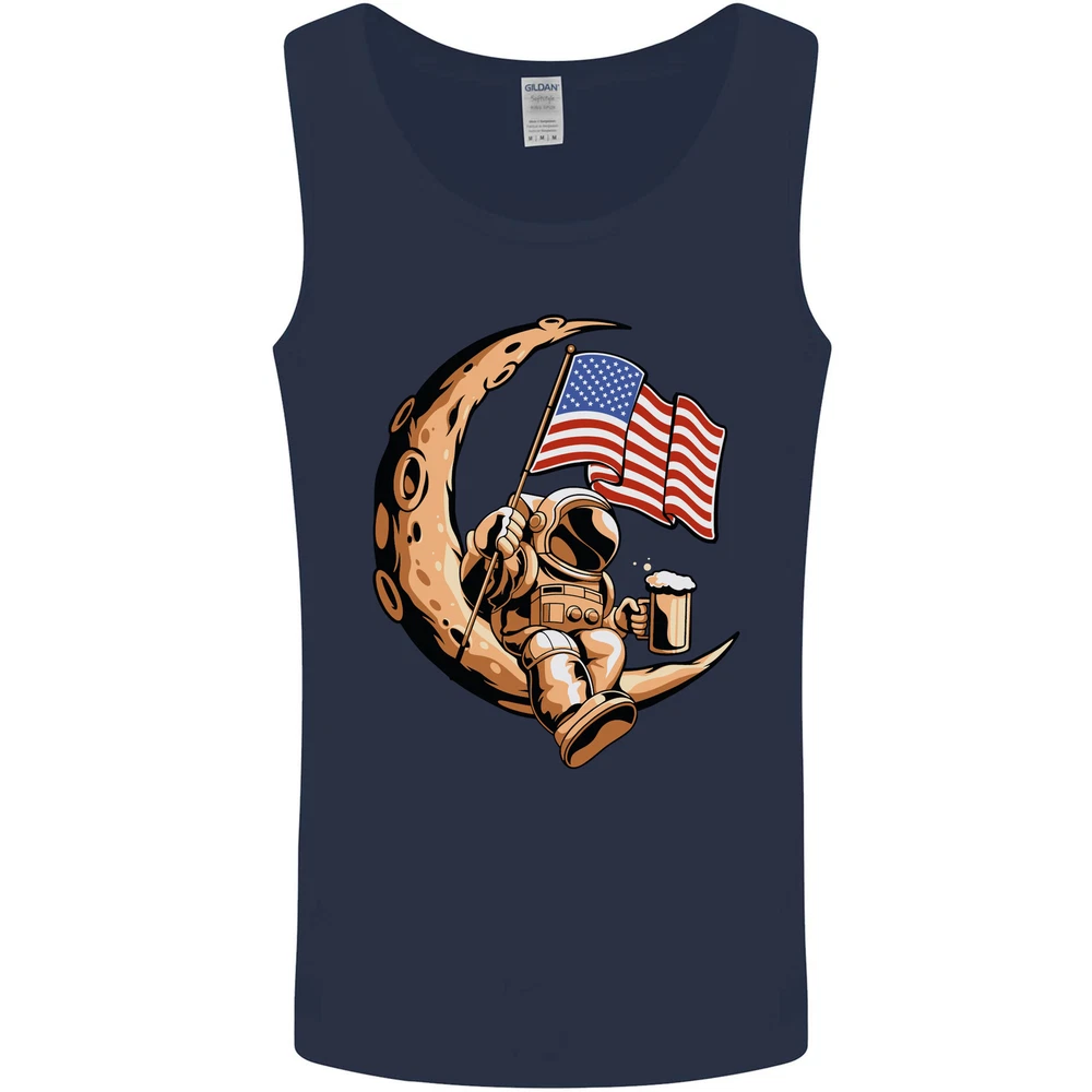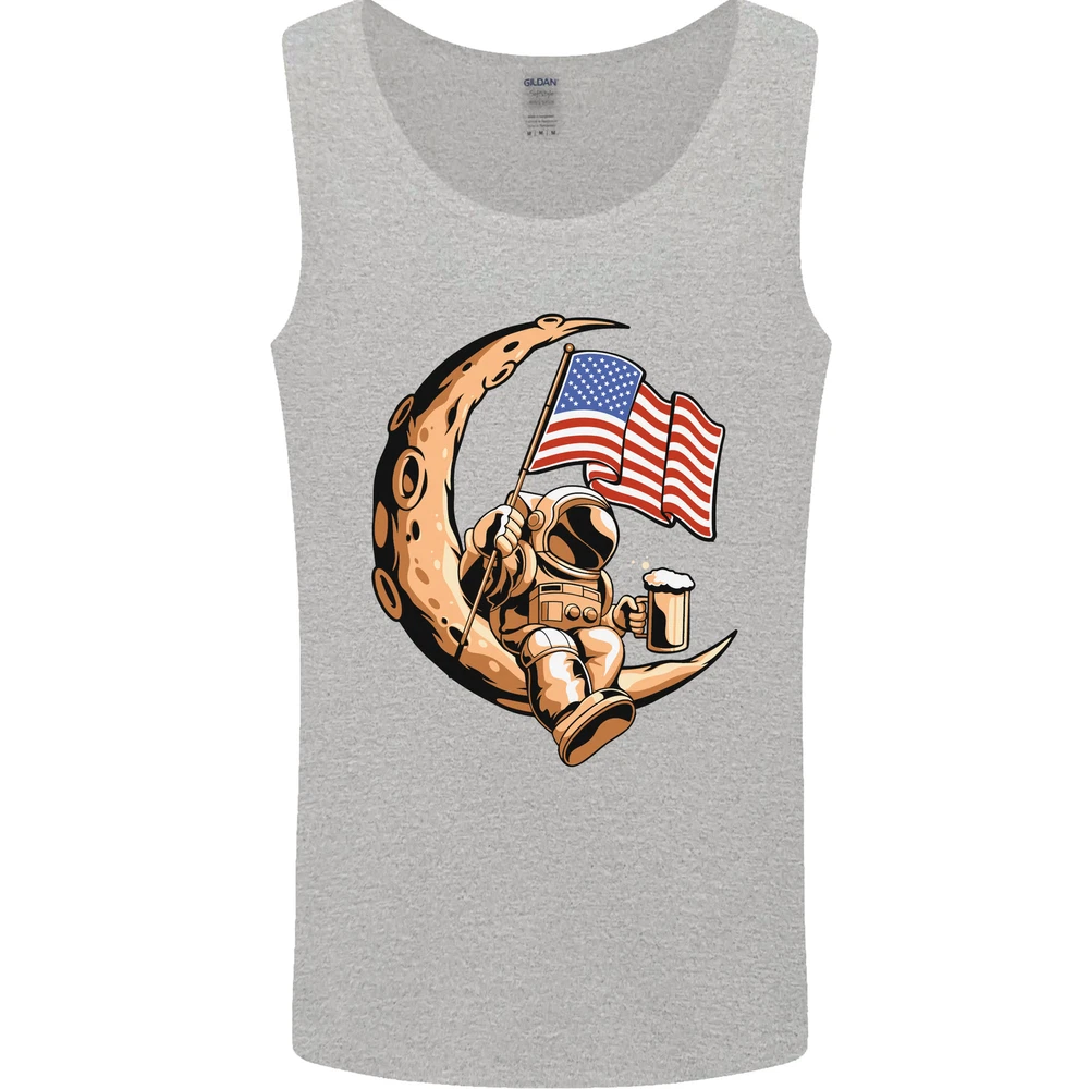 Beer Moon USA Flag Astronaut Space Alcohol Mens Vest Tank Top