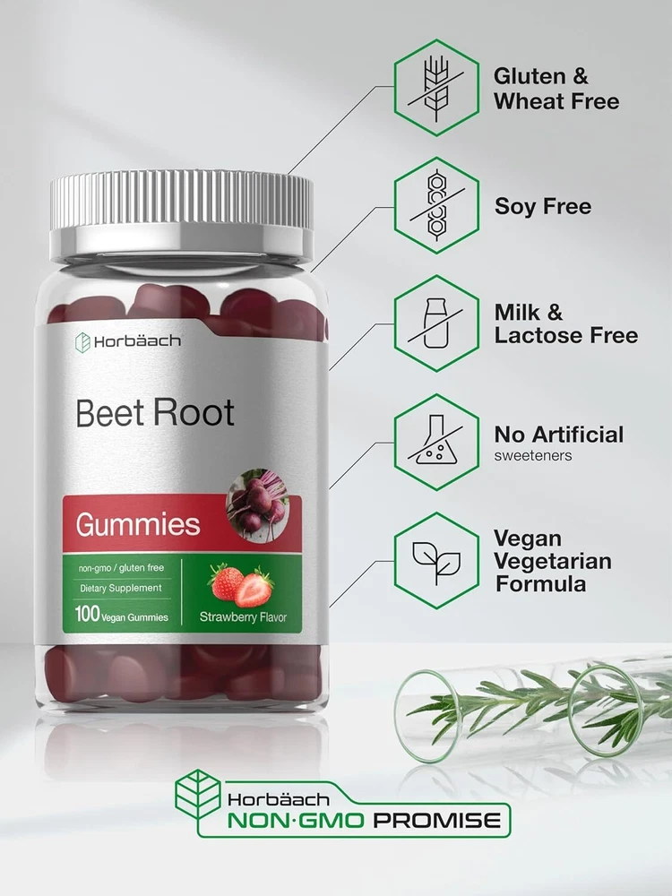 Nature’s Red Superfood: Beet root (Beta vulgaris) is an iconic red superfood that grows abundantly throughout North America and Europe. This powerful superfood is well known for its earthy flavor and strong nutritional content. It is a natural source of vitamins and minerals, nitrates, and pigment compound, "betaine." Supplementing with Beet Root: Beet root is featured in many supplements including bulk powder, capsules, pills, liquid tinctures, chews, tea, and tablets. Now there is a whole new way to enjoy the goodness of this superfood with the delicious taste of a gummy. Horbaach Beet Root Gummies: Boost your daily routine with Horbaach’s Beet Root Gummy! These bite sized vegan gummy chews provides the equivalent 6,000 mg of Beet Root per serving, plus Black Pepper and Vitamin C for ultimate nutritional support. They’re bursting with strawberry flavor and made without artificial sweetener, so nothing will stand in your way of feeling your best every day.