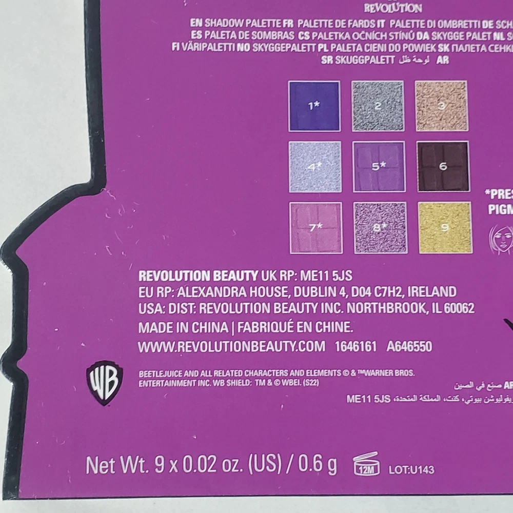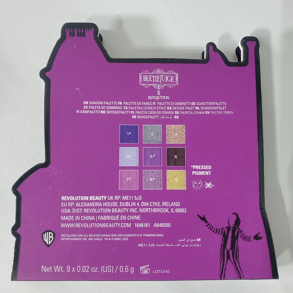 Beetlejuice x Revolution 9 Color Shadow Palette Haunted Mansion .18oz 9 x .02 oz=.18oz total palette weight In new unused condition Does not come with original box Please view all photos for condition and measurements Thank you for viewing our products. PRODUCT SOLD AS IS. Please Message With Questions Prior To Purchase. If you have an issue with any of our items please reach out to us prior to contacting eBay. Thanks! Please note: We do sell new and used items. Our used items are pre-owned / pre-loved & may show signs of wear. Please view all photos for details, size, & imperfections as they are a form of the descriptions in addition to what is stated in the description section. We will do my best to inspect each item to find the best quality items possible. We do not include/replace batteries in any of our items unless they have been supplied by the manufacture and are in new unused condition. If an item is sent to you NEW / SEALED and you open it or remove the tags, it is NO LONGER ELIGIBLE FOR RETURN. Opened items / Removed tags - Means the item is NO LONGER in its original state and can no longer be sold as NEW. -Thank you for your understanding We are often asked about shipping cost. We are excited about your purchase and take pride in your package arriving to you undamaged . We wrap and cushion all necessary items prior to shipping which adds weight to your package. Unfortunately, this is not optional. Thank you for your understanding. We do not accept returns or issue refunds however in the event we do accept your return or issue a refund we do not reimburse your original shipping fee. Due to how eBay handles international shipping we do not accept any international returns. Thanks again!