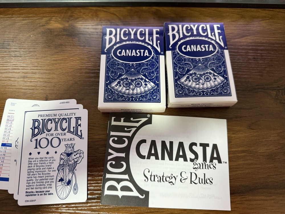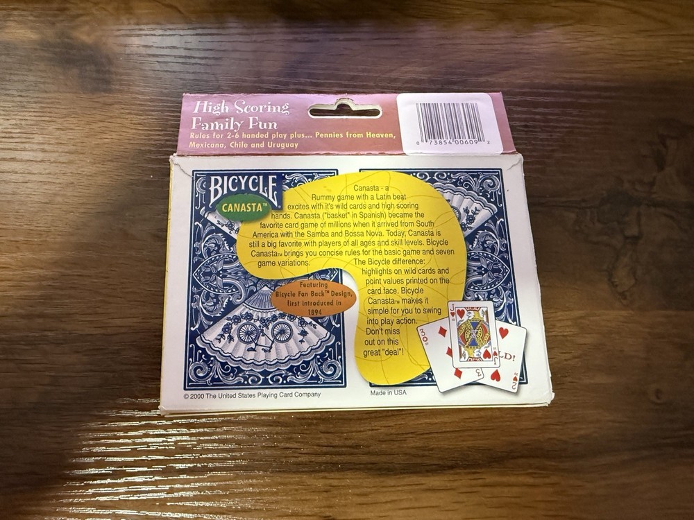 The Bicycle Canasta Beginners Set is a modern set of playing cards manufactured in the United States by the brand Bicycle. This set is designed for beginners to learn and enjoy the game of Canasta, with cards suitable for ages ranging from the 1970s to the present. The set includes all the necessary cards and instructions for players to learn and play the game, making it a perfect option for those looking to start their Canasta journey. Opened but not used