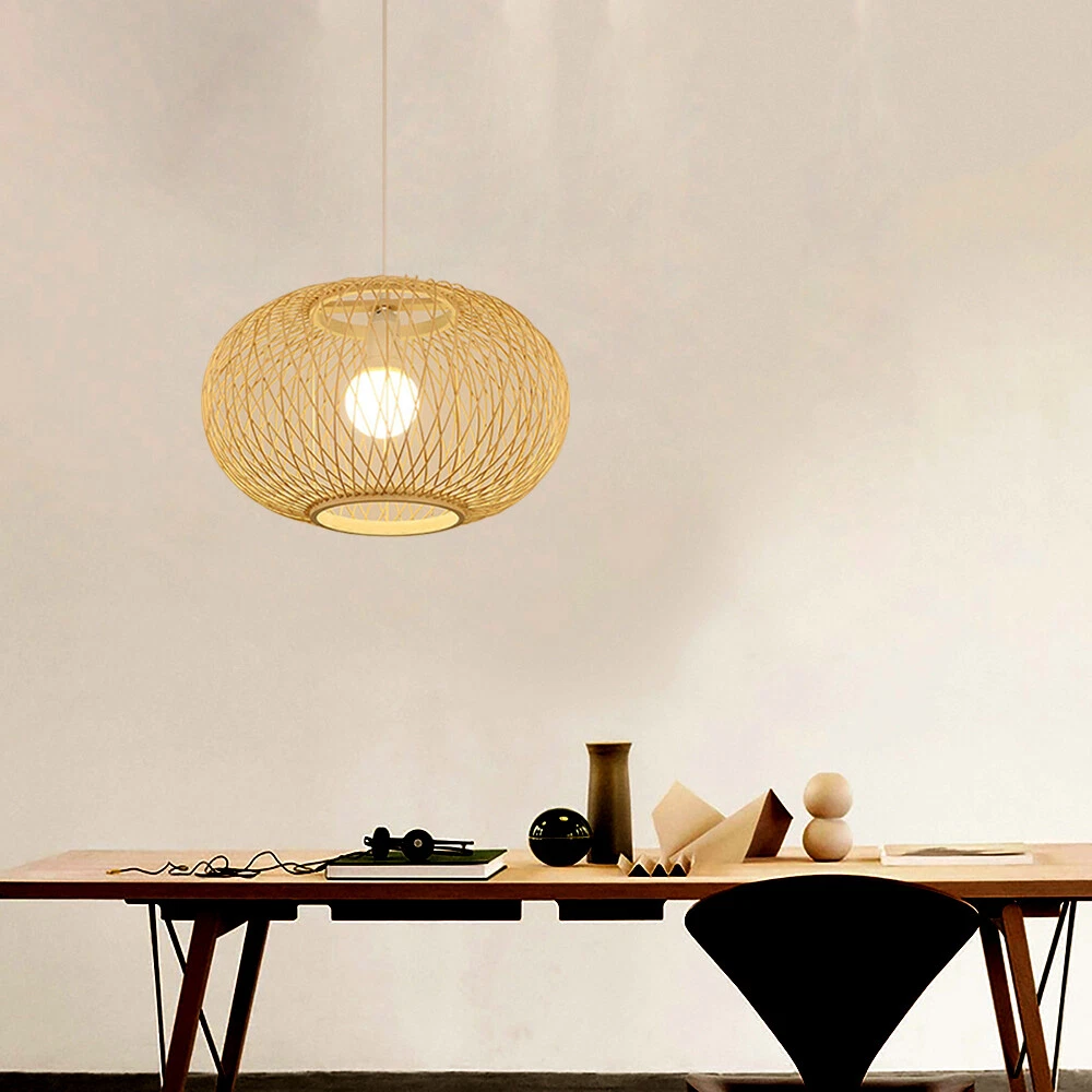 Beige Bamboo Wicker Rattan Woven Pendant Light Fixture Ceiling Lamp Chandelier