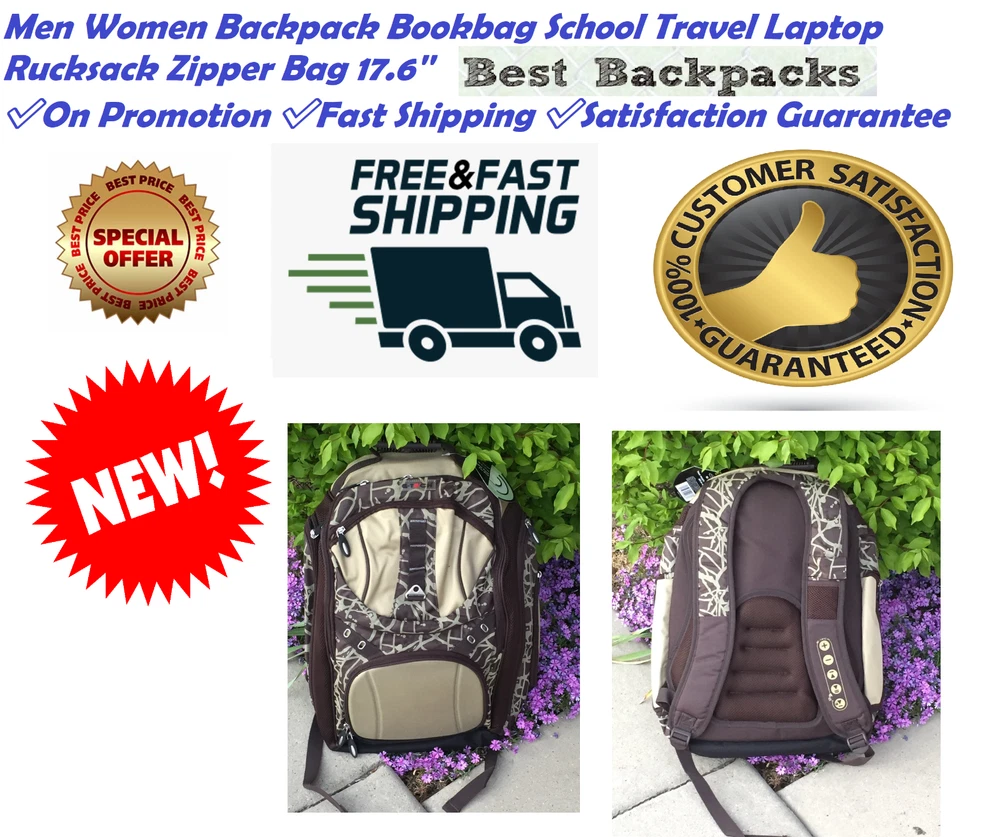 Beige High School Backpack Laptop Rucksack Zipper Bag NWT Clearance Sale