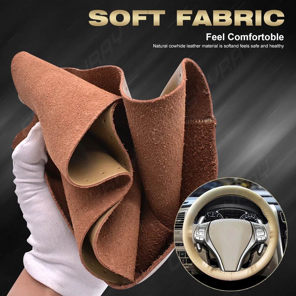 If the product is not suitable or there is a quality problem, please contact our customer service directly to solve the problem. We will give you a satisfactory solution. Brand New and Never been Used Color: Fashion Beige with Needle Elegance and Luxury Design, Fashion and Practical Combination Top Quality Soft Touch Leather, add Comfort, Safty and Protection for your Journey Ergonomic Design Provides Excellent Grip, Skidproof with Tyre Pattern and dotted Design Comfortable Hand Feel, massage your Palm to Relieve Drive Fatigue, Suitable for all Season Easy to Install Description: Steering Wheel Outer Diameter: 37-38cm(14.5"-15") cover size: 38cm(L) x 10.5cm(W) Compatible:Almost 90% car models with 37-38CM outside diameter steering wheel Item included: Steering wheel cover *1 Thread and needle tool set *1 Color: Beige Condition: 100% new (The picture and the actual product have some color difference, the actual color shall prevail in kind) Features: 1.Sewing it by yourself with thread and needle,enjoy DIY pleasure! 2.Provide extra comfortable feeling all round steering wheel. 3.Offer unique decoration for your car 4.No unpleasant smell. 5.No quarantine/customs problem. The package has: 1 leather steering wheel cover 2 needles 2 ties On Jan 23, 2025 at 00:45:53 PST, seller added the following information: