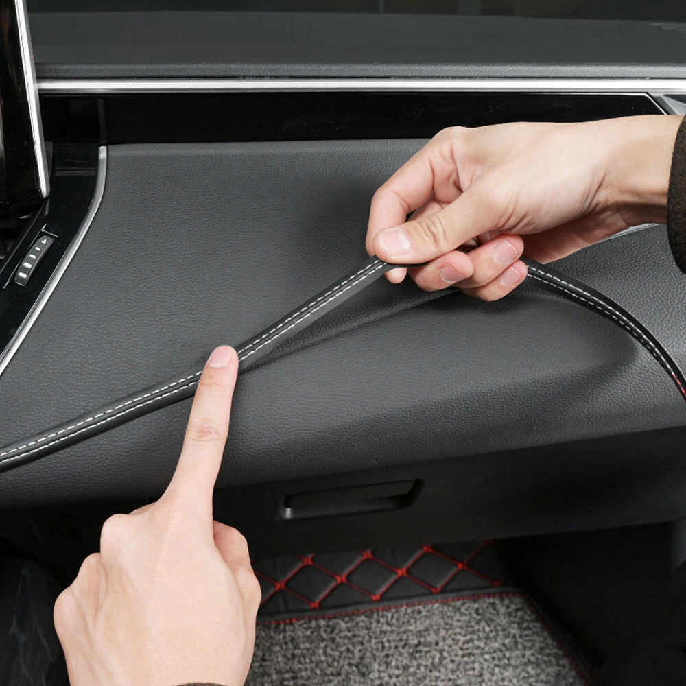 Beige PU Leather Car Dashboard Decor Line Strip Sticker Molding Trim Accessories