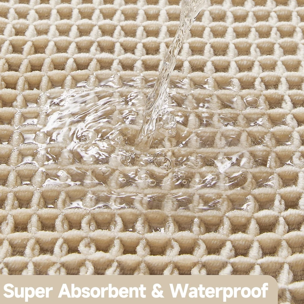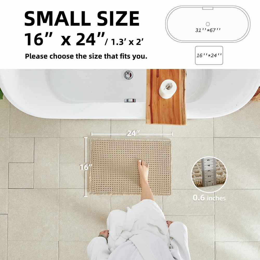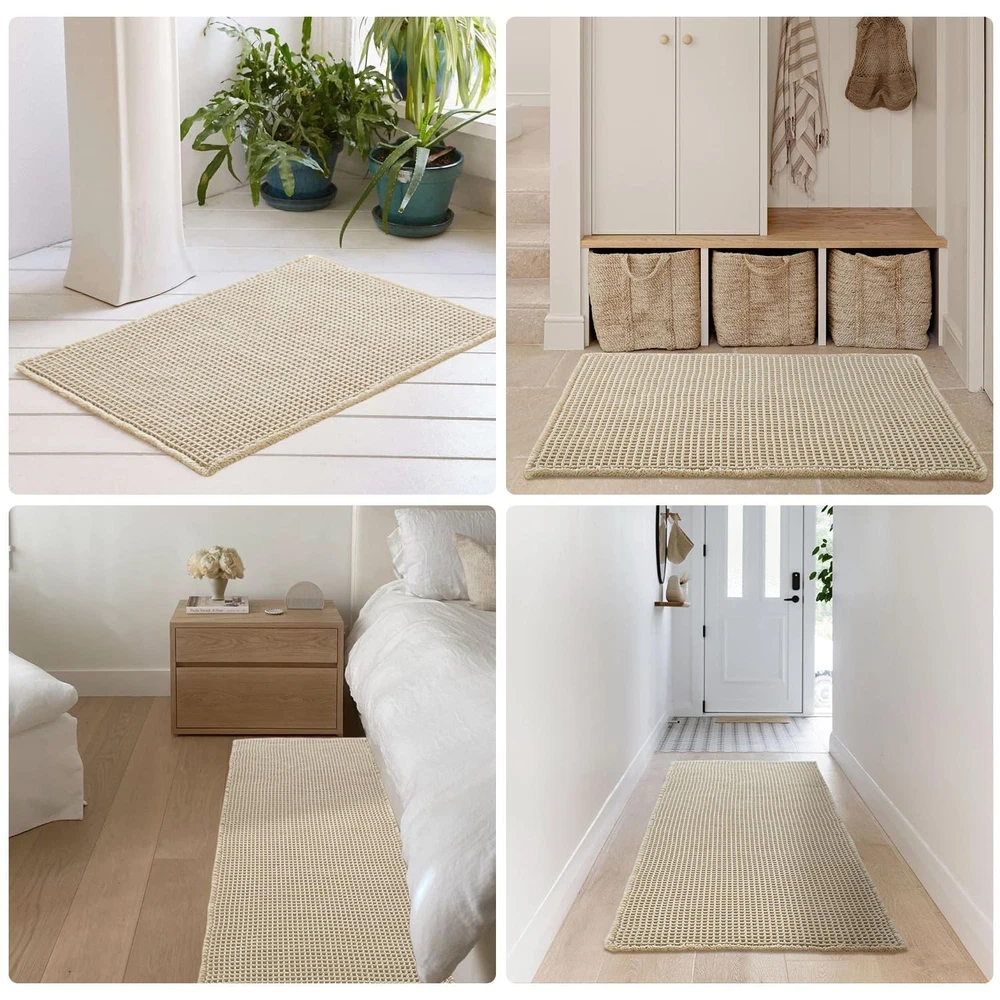 Transform your space with our premium waffle bath mat, designed to bring both style and practicality to your home. Woven from high-quality yarn into a unique waffle pattern, these boho bathroom rugs combine an aesthetic appeal with top-notch functionality. The innovative weave design ensures exceptional moisture absorption and fast drying, keeping your floors fresh, dry. Safety is always a priority with our non-slip backing. Featuring durable hot melt adhesive, these mats stay securely in place on smooth surfaces, reducing the risk of slips and falls. Perfect for households with kids or seniors, these rugs offer peace of mind with every step. Maintaining your waffle bath mat is easy and hassle-free. These washable rugs are perfect for daily use, and while hand washing or rinsing under running water is recommended to preserve the non-slip backing, occasional machine washing on a gentle cycle works too. Just remember to avoid tumble drying or bleach to keep your mat in pristine condition. But these rugs aren’t just for bathrooms—they’re the ultimate multitaskers! Whether you're styling a neutral bohemian-inspired space, a cozy farmhouse nook, or a sleek modern room, these rugs fit right in. Use them in the kitchen, laundry room, hallway, entryway, or even in your RV. Available in a variety of sizes, from small mats to long runners, they’re perfect in front of sinks, showers, bathtubs, and more. Their chic jute-like texture and earthy aesthetic make them a versatile and stylish choice for any decor. Upgrade your home essentials with our waffle bath mat and enjoy the perfect blend of boho charm, modern practicality, and timeless design. From their super absorbent functionality to their non-slip backing, these bathroom rugs deliver comfort, style, and convenience for every corner of your home. Comfort and Style: Our bathroom rugs are like a warm hug for your feet, crafted with a chic waffle texture and a geometric design. Stepping out of the shower feels like landing on a cloud, transforming your bathroom into a cozy, spa-like retreat Super Absorbent and Quick Dry: These waffle bath mats are moisture magnets! Their unique weave quickly absorbs water, keeping your bathroom dry and comfy Upgrade Non-Slip Backing: Safety comes first with our upgraded mats. The transparent hot melt adhesive backing sticks to smooth surfaces like glue, keeping the bath rug firmly in place. No more worrying about slips or curls—just safe, steady steps Easy to Clean: Caring for these boho bathroom rugs is a breeze. Hand wash or rinse them under running water for best results. While occasional machine washing is okay, avoid tumble drying and bleach to keep your mat in perfect shape. Treat it with care, and it’ll last for the long haul Versatile and Stylish: Available in a variety of sizes and stylish colors, these waffle bathroom rugs are the ultimate multitaskers. Perfect for your sink, shower, or bathtub, they also work in the kitchen, laundry room, RV, hallway, entryway, or even on stairs. Wherever comfort and style are needed, this waffle knit bath mat gets the job done