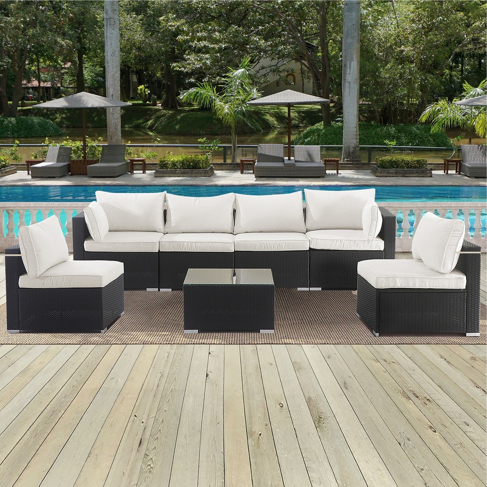 Beige Wicker Rattan 7-Piece Sectional Sofa Cushion Covers