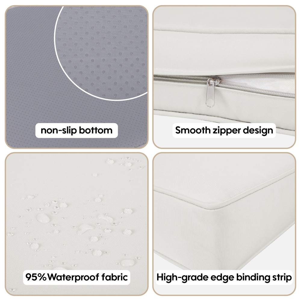 【Package Information】14pcs cushion cover Includes 6Pcs seat covers(25.6Lx25.6Wx3.9H inch) 6 backrest covers (25.6Lx13.8Wx3.9H inch) and 2Pcs small armrest covers (21.9Lx13.8Wx3.9H inch) , perfectly fitting for 6-seater wicker rattan patio conversation set. COVERS ONLY and please measure the seat cushion size carefully before placing an order. 【FUNCTIONALITY &DURABLE 】--Considering the extended lasting use in the outdoors, the fabric is made of polyester. But it is by no means cheap and the categories are costlier color woven fabric, which boasts high color richness, dimensionality, and color fastness to last for a outdoors. The splash-resistant splash-resistant and sun-resistant properties allow you to maintain it with less effort. 【DURABLE, FADE】SOFT--Considering the skin comfort, so only splash-proof function, not completely waterproof, water just beads up on the patio cushion cover, which can be brushed off quickly with a towel. The zipper strap also prevents rain from entering through the zipper. The surface has a highly UV-resistant coating, which is durable and fade-resistant in the sun. 【Metal zipper and non-slip design】 - Many customers worry that the zipper is easily damaged, so we designed double stitching to increase the facstness of the zipper.We also made a Latex non-slip design on the back of the seat cushion, and a lacing design on the backrest, the cushion and cushion will be firmly fixed. So you do not have to worry about moving. NOTE--The product only includes the sofa cover, not the inner core. Please measure the size carefully before purchasing. 6Pcs seat covers(25.6Lx25.6Wx3.9H inch) 6 backrest covers (26.8Lx13.8Wx3.9H inch) Including: 14 Outdoor rattan set cushion cover ;