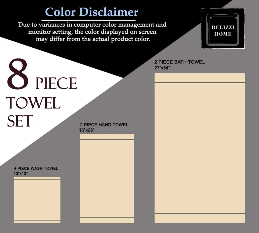 cotton towel is a beautiful and carefully crafted product with lot of attention to details. High quality living, luxurious, exceptionally smooth and soft to the touch. Sustainable product without compromising on the comfort and style. Made in a state of the art vertically integrated facility. A set contains 2 bath towels 27x54, 2 hand towels 16x28 and 4 washcloths 13x13 Ring Spun Cotton for softness, absorbency and durability - Luxurious hotel and spa quality towel set Made in OEKO-TEX certified facility - 450 GSM towel set - a perfect balance of quality and weight Edges are reinforced with fine double-needle stitching so these towels won’t warp or fray Machine washable, tumble dry low - always follow care instructions on label for best results
