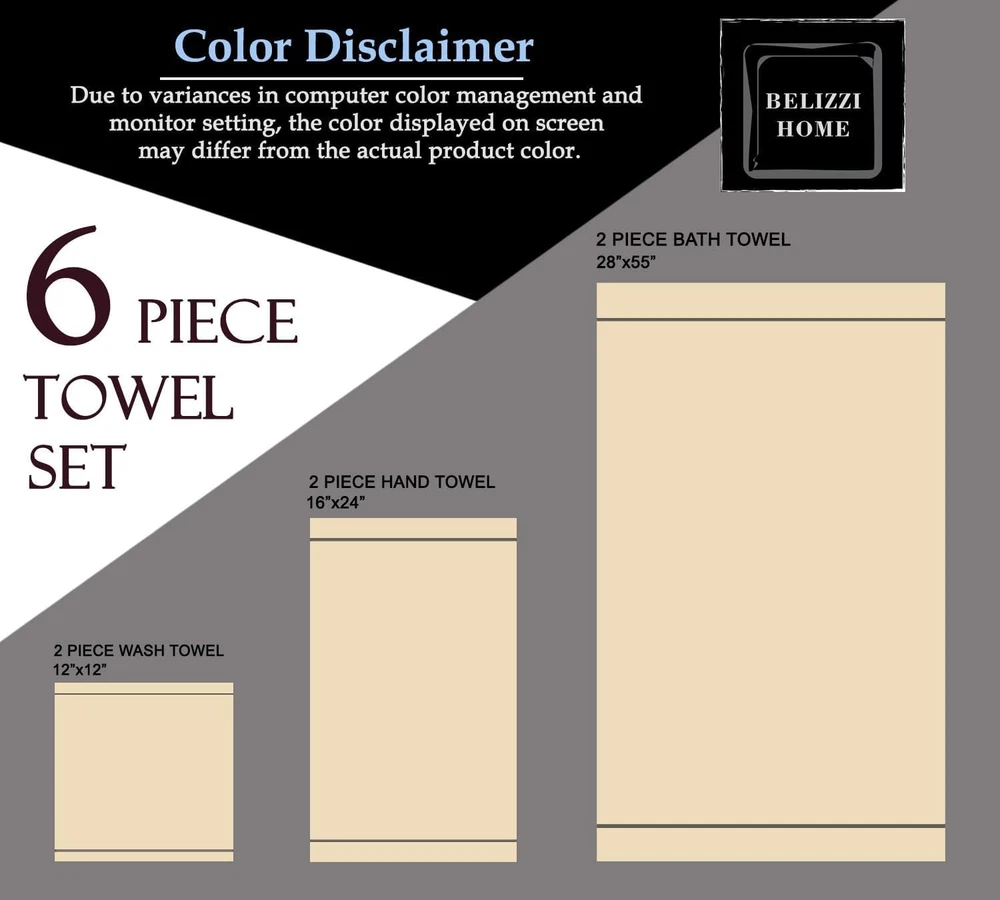 Belizzi Home Ultra Soft 6 Pack Cotton Towel Set, 12" x 12", Turquoise Blue Product Details Color: Turquoise Blue Brand: Belizzi Home Towel form type: Bath Towel Material: Cotton Product Dimensions: 55"L x 28"W Number of Items: 6 Style: Durability Pattern: Solid Special Feature: Durability,Lightweight Theme: No Theme Product Care Instructions: Machine Wash, Tumble Dry Shape: Rectangular Size: 12" x 12" Unit Count: 1 Count Fabric Type: 100% Natural Cotton Age Range (Description): Adult Manufacturer: Elvana Home Item Weight: 1.98 pounds Item model number: 70138 Is Discontinued By Manufacturer: No Each set contains 2 oversized bath towels 28x55 inches, 2 hand towels 16x24 inches & 2 wash cloths 12x12 inches 100% Pure cotton for softness, absorbency & durability - Outdoor Lightweight Quick Dry Towel Set Complimented set for daily use, hotel & spa, quick drying & multipurpose usage 100% Natural materials & free from harmful chemicals / materials - safe for you & your family Machine washable & dryable, wash in cold water, tumble dry low - wash separately before first use