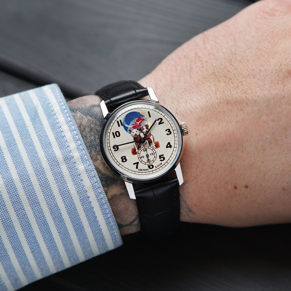 Vintage Pobeda "Belka β Strelka" Watch, 1970s Original Pobeda watch from the 1970s featuring the reliable 2602 mechanical movement , known for its durability and consistency. The watch comes with a new case and a transparent case back , allowing you to view the movement in action. Classic beige dial , silver-colored case , and leather strap combine to create a stylish balance of vintage Soviet design and clean modern craftsmanship. History of Pobeda Watches Pobeda watches were first produced in the 1940s and became a symbol of reliability in the Soviet Union. The Pobeda 2602 movement was used in both civilian and military models and is valued for its simplicity, durability, and stable operation. Today, these watches are appreciated by collectors and lovers of classic mechanical timepieces alike. π¦ Case Material: Silver-colored stainless steel Diameter: 34 mm β comfortable and expressive on the wrist Condition: Clean, renewed, no visible defects βοΈ Movement Caliber: Pobeda 2602 Type: Mechanical, manual winding π Strap Material: Leather Width: 18 mm βοΈ Condition The watch has been carefully checked before listing. The movement is fully functional, stable, and ready for daily wear. Each watch is carefully inspected for movement performance and authenticity before sale. This is not a βlotteryβ vintage watch β you receive a working, reliable timepiece that retains its historical character. Our goal is simple: to provide you with a watch that works and brings pleasure , without surprises a month later. π 30-Day Return Policy Returns are accepted within 30 days of delivery if the watch is in the original condition and packaging. Return shipping costs are the responsibility of the buyer. π International Shipping We ship worldwide with a tracking number so you can follow your order at every step. The watch is carefully packaged to ensure safe delivery. Estimated delivery times: USA: 8β14 days Europe: 7β21 days Other countries: 7β21 days A short wait is worth it: you will receive a tested vintage watch , ready to wear, preserving its historical charm. π¬ Customer Support If you have any questions about the watch or your purchase, we are always happy to assist. Thank you for choosing this unique vintage timepiece β we hope you enjoy wearing it and appreciate its mechanical craftsmanship.